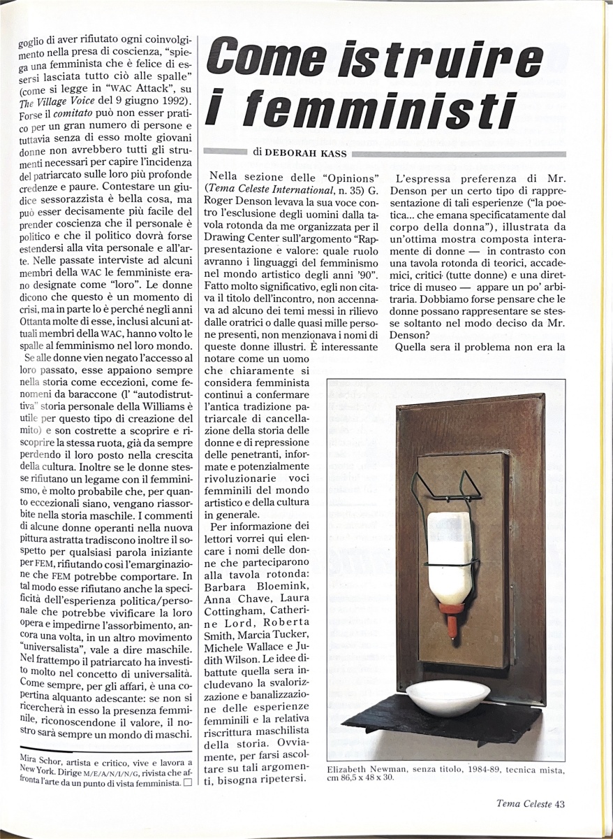 Deborah Kass, Come istruire i femministi, «Tema Celeste», n. 42/43, autunno 1993, pp. 43-44