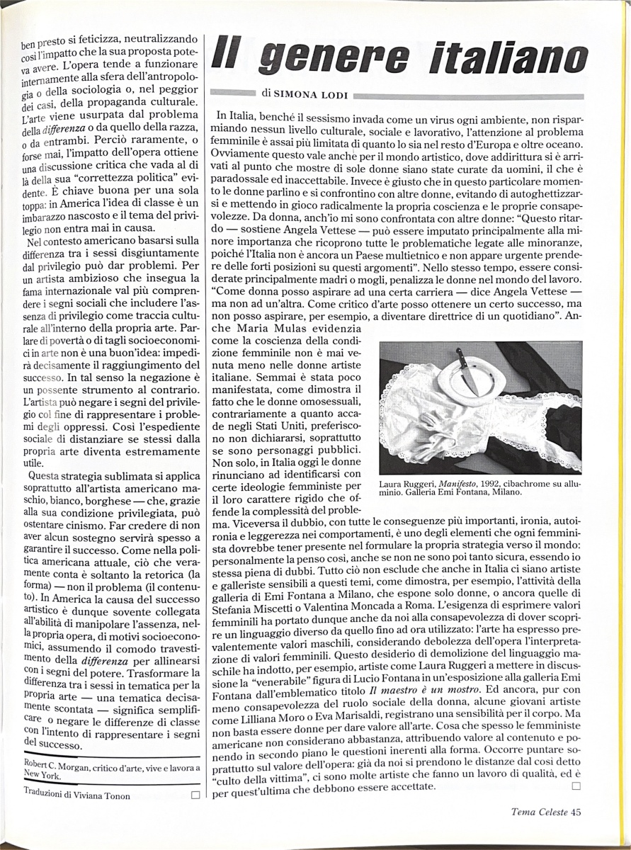 Robert C. Morgan, Il genere americano, «Tema Celeste», n. 42/43, autunno 1993, pp. 44-45