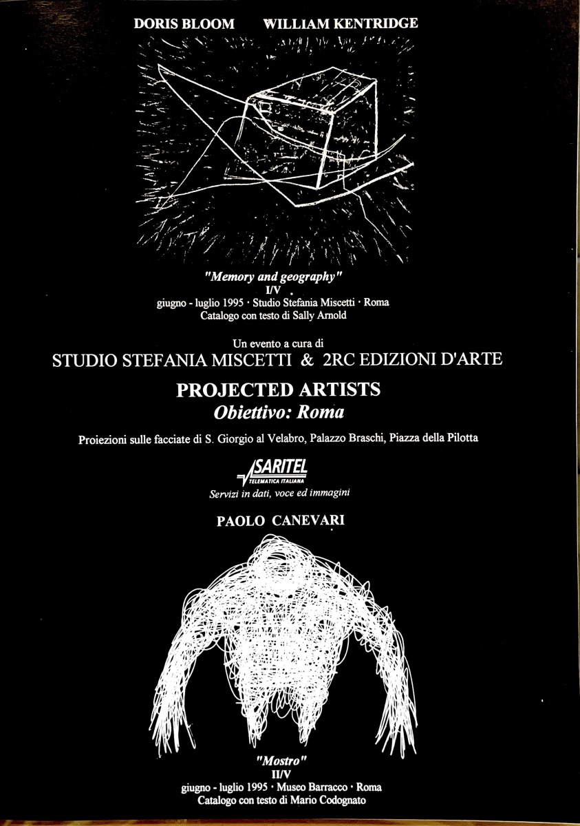 | Descrizione | Pubblicità di un intervento di Doris Bloom e William Kentridge [sudafricani] a Roma, a cura dello Studio Stefania Miscetti e 2RC Edizioni d'Arte. |
