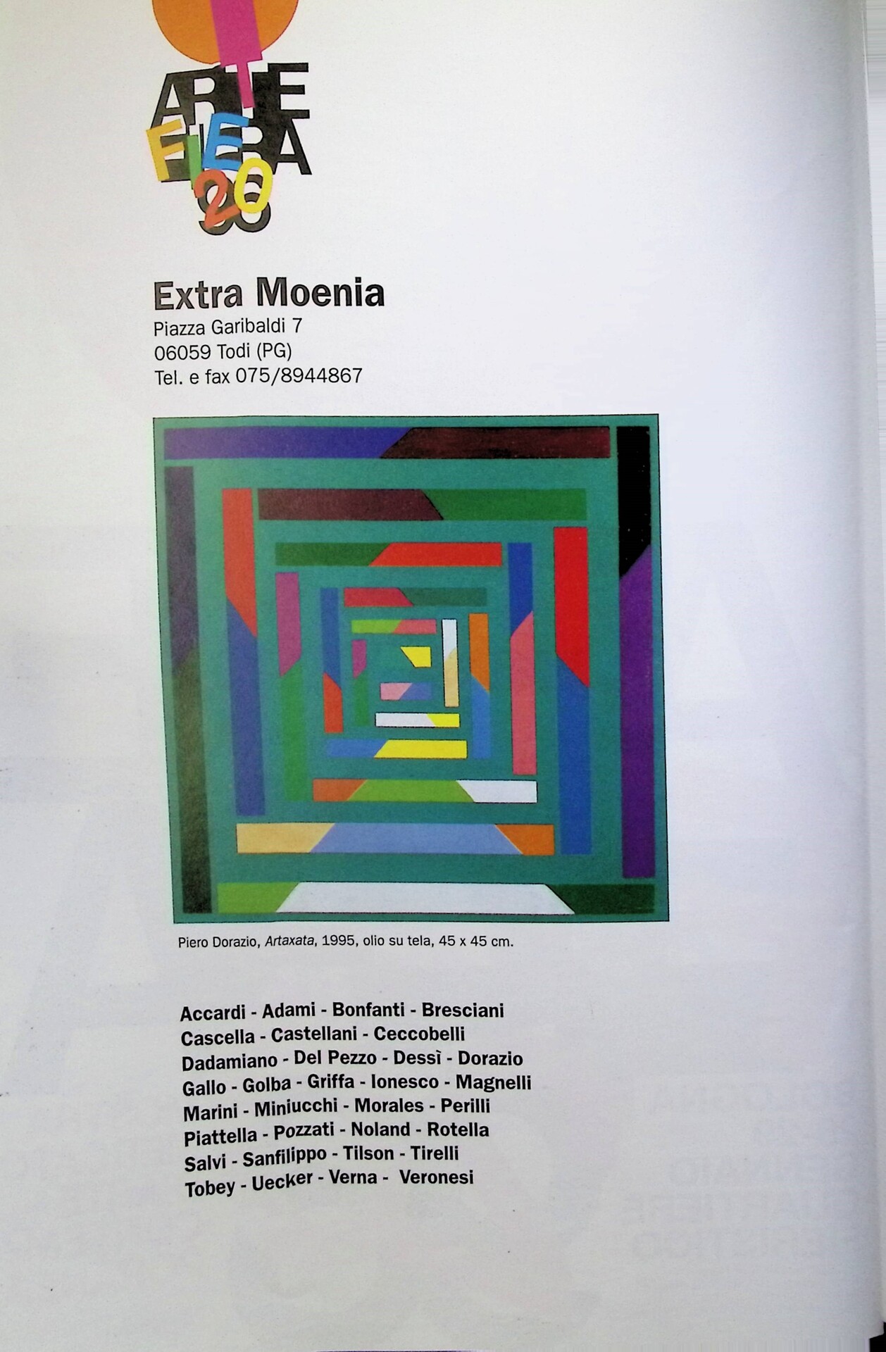 | Descrizione | Pubblicità della Galleria Extra Moenia di Todi per Arte Fiera 20, con i nomi, tra gli altri, di Hossein Golba [iraniano] e Carmengloria Morales [cilena]. |