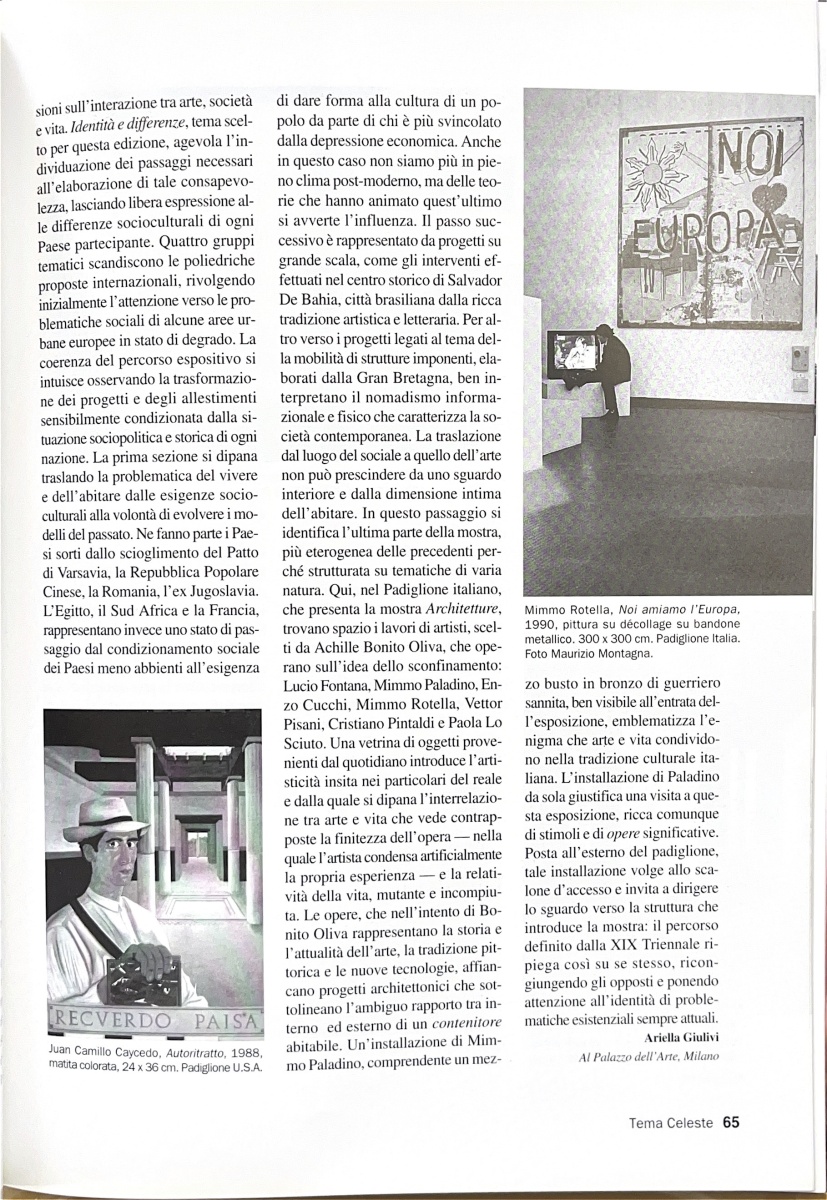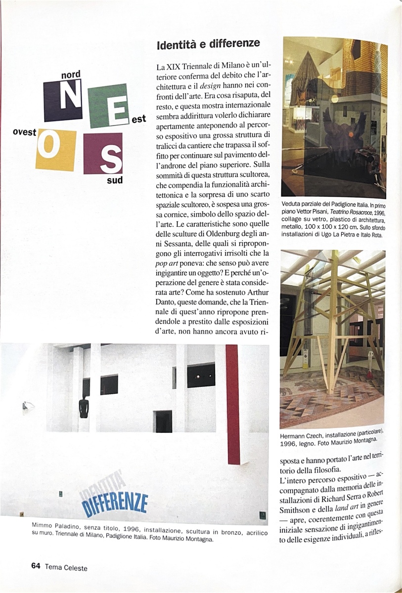 | Cit. bibliografica | Ariella Giulivi, identità e differenze, «Tema Celeste», n. 57, estate 1996, pp. 64-65 |