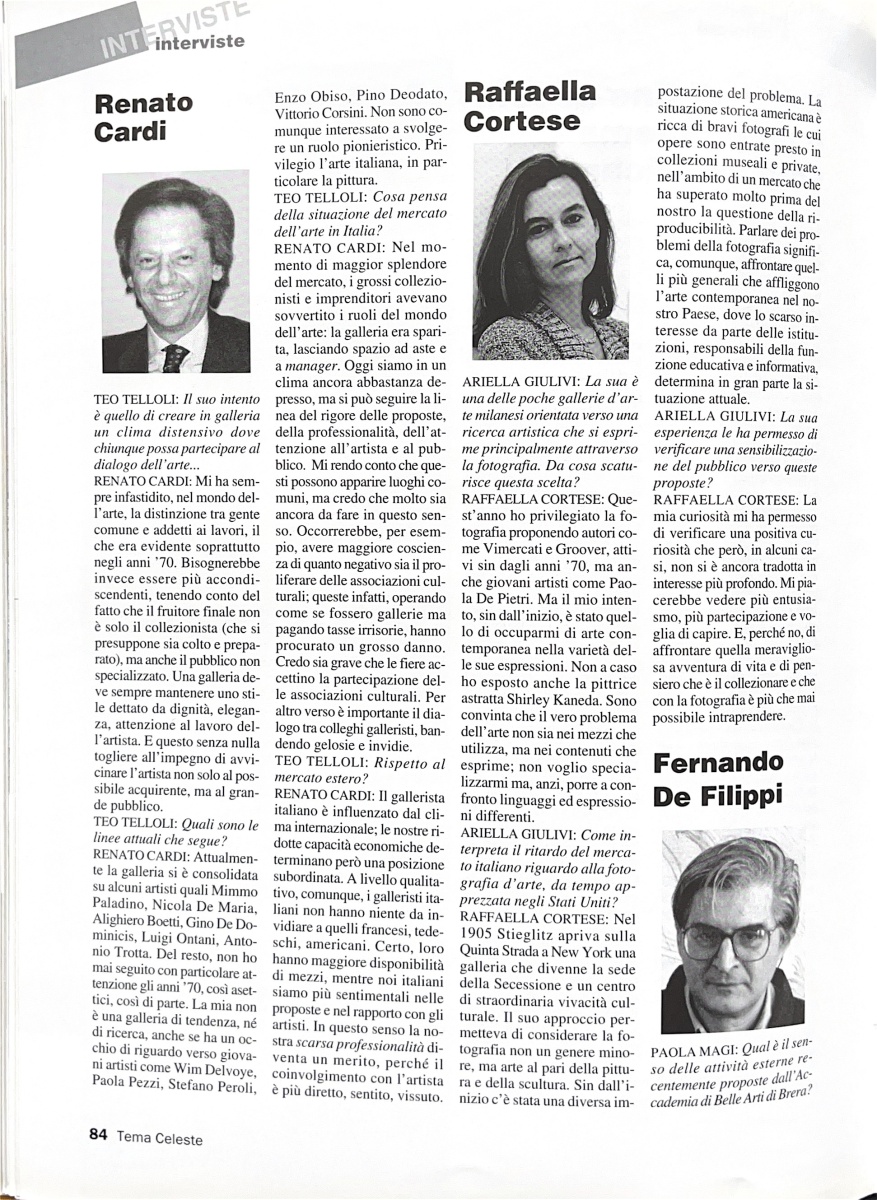 Ariella Giulivi, Raffaella Cortese, «Tema Celeste», n. 58, autunno 1996, p. 84