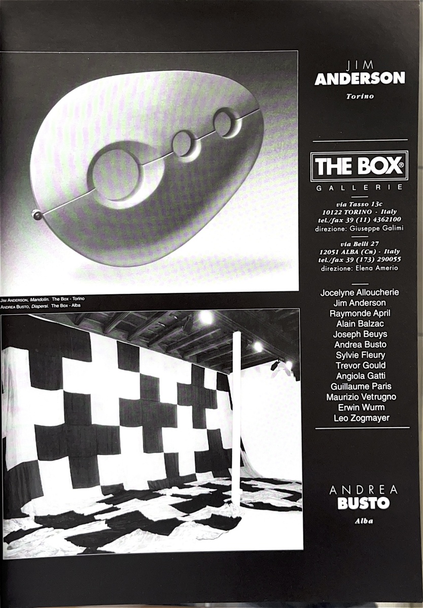 | Descrizione | Pubblicità della mostra di Trevor Gould [sudafricano] alle Gallerie The Box di Torino. |