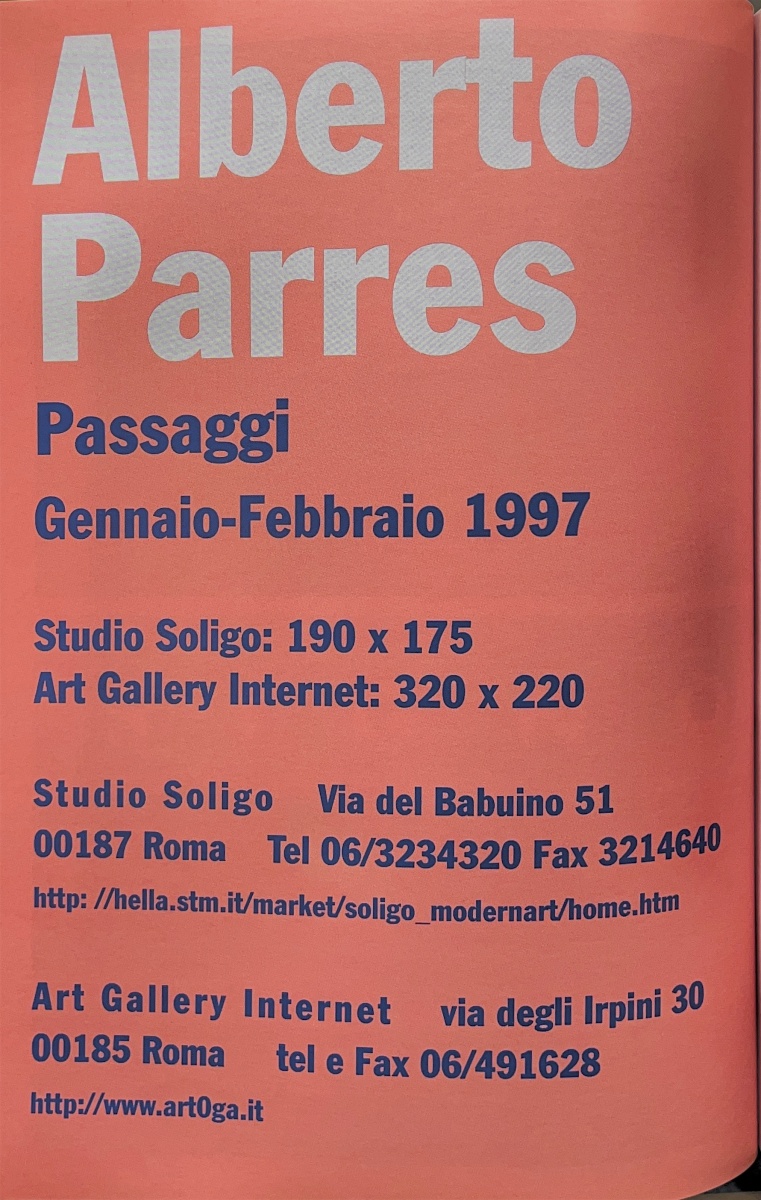 | Descrizione | Pubblicità della mostra Paesaggi di Alberto Parres [nato a Tangeri] allo Studio Soligo di Roma. |