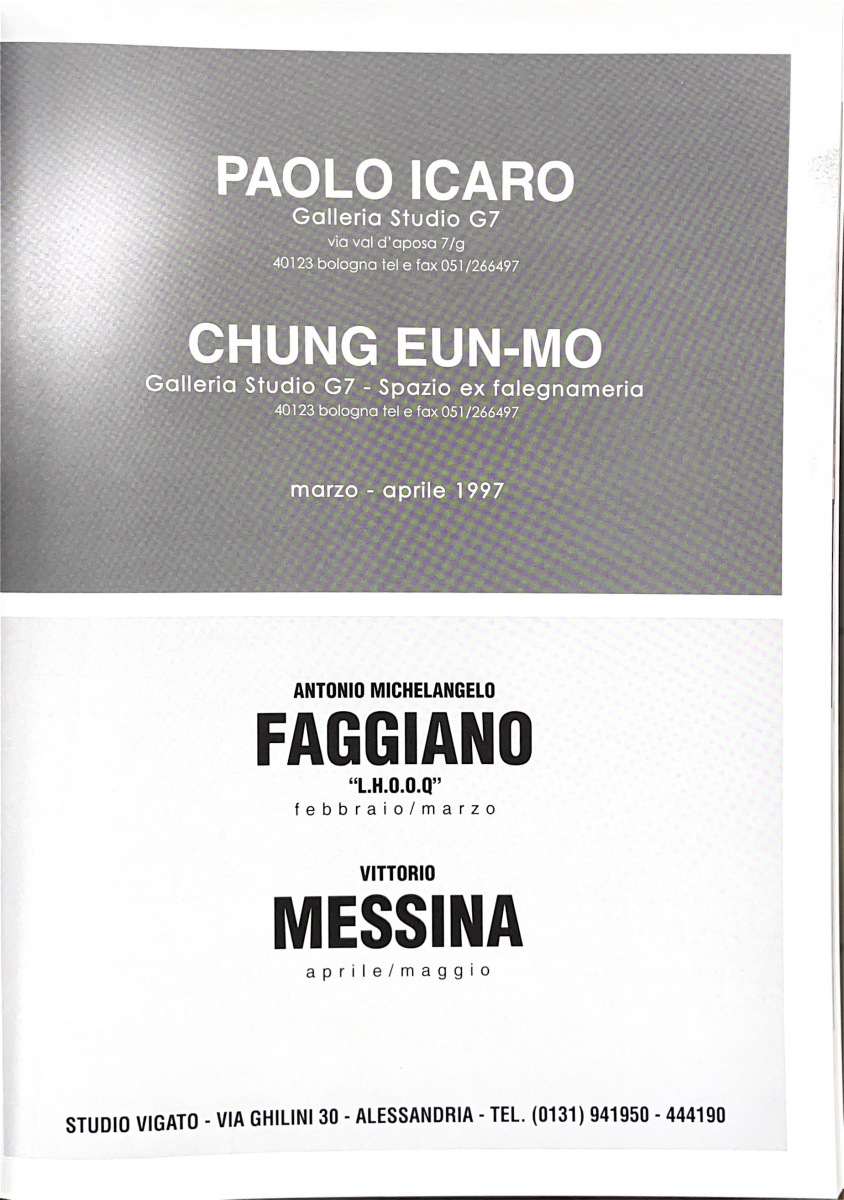 | Descrizione | Pubblicità della mostra di Chung Eun-Mo [coreana] alla Galleria Studio G7 di Bologna. |