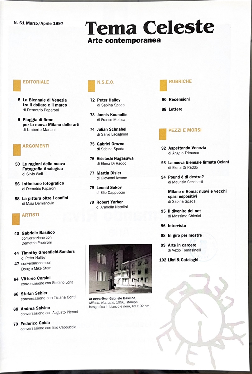 | Cit. bibliografica | [senza titolo], «Tema Celeste», n. 61, marzo-aprile 1997, p.n.n. |