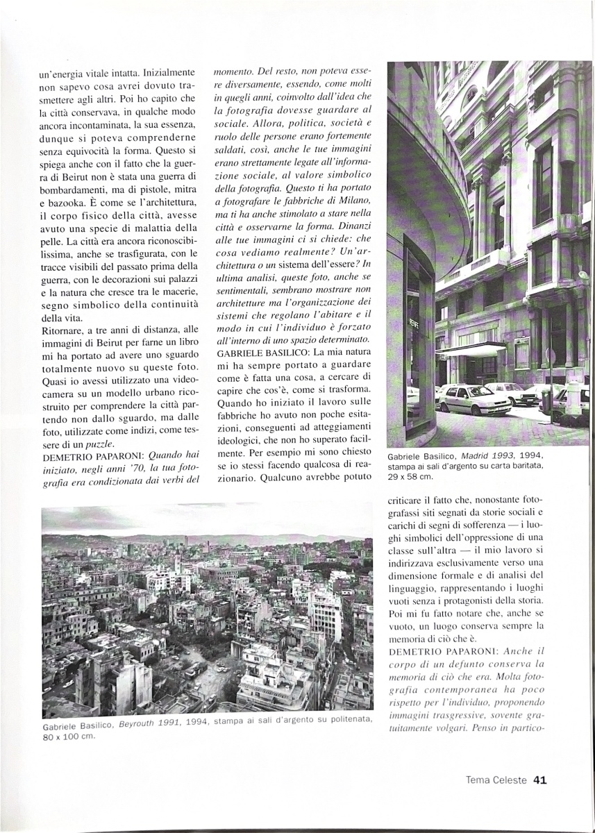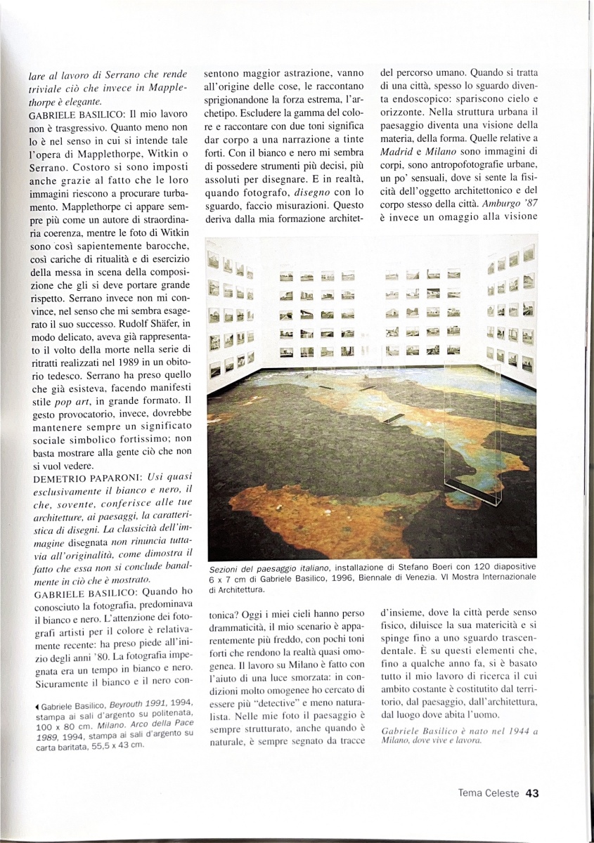 Gabriele Basilico, Demetrio Paparoni, Gabriele Basilico, «Tema Celeste», n. 61, marzo-aprile 1997, pp. 40-43