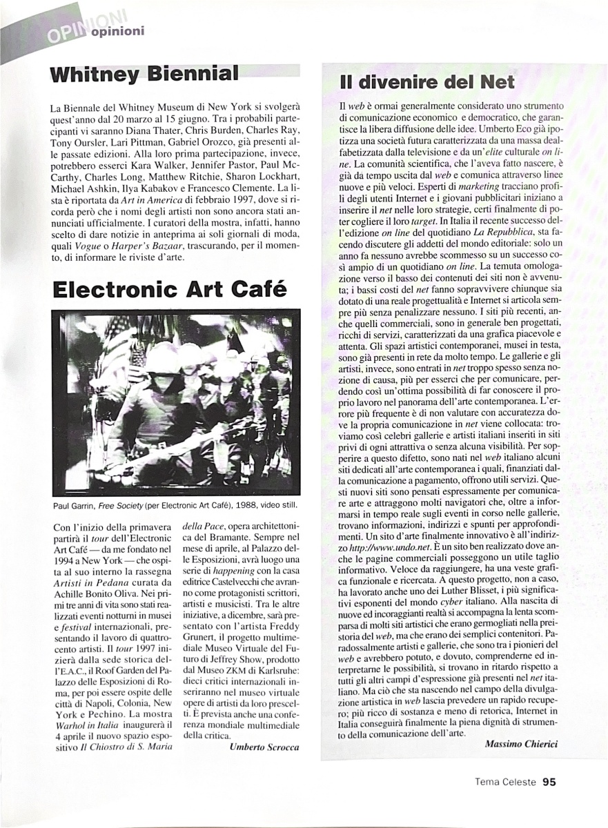 Whitney Biennal, «Tema Celeste», n. 61, marzo-aprile 1997, p. 95