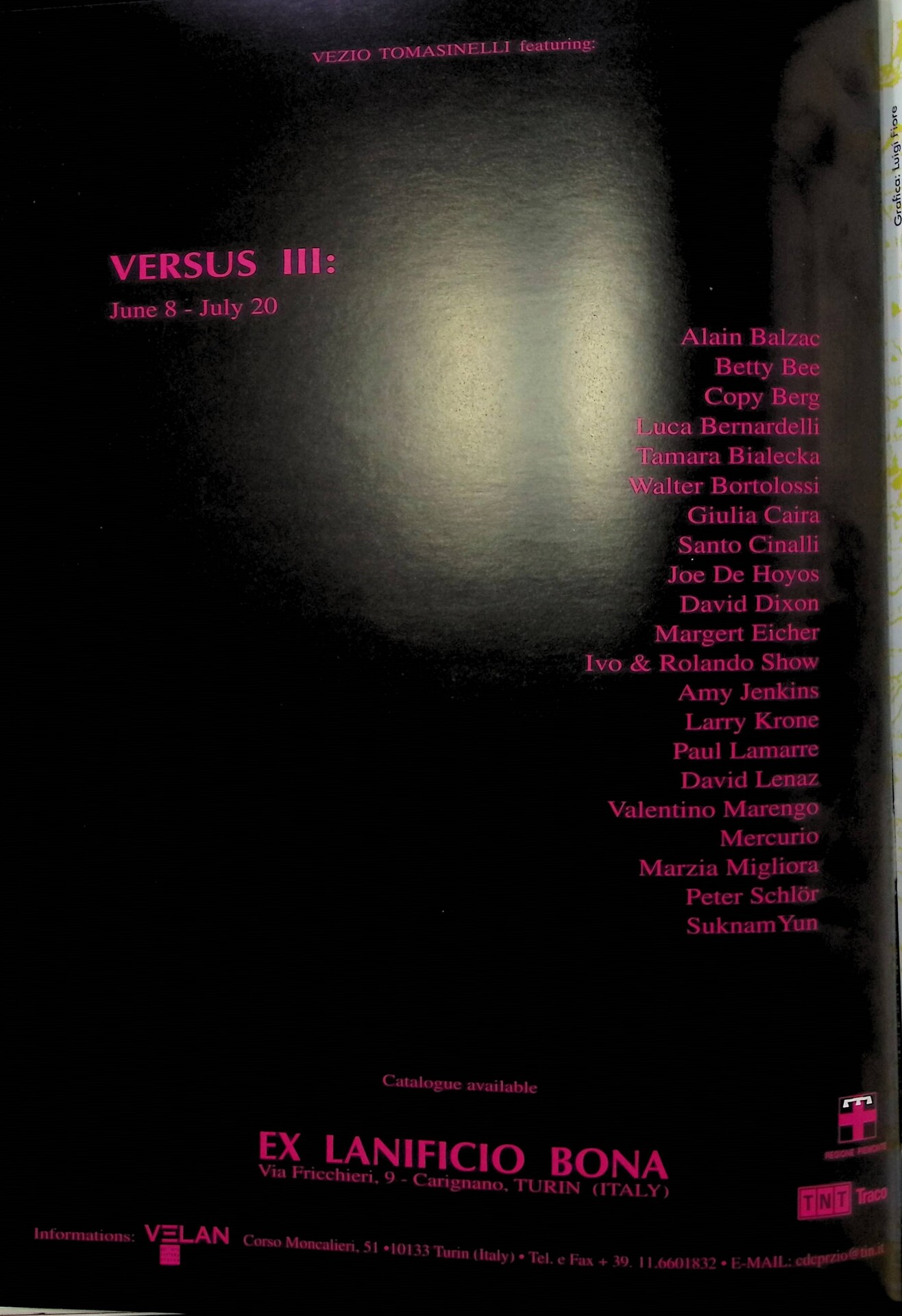 | Descrizione | Pubblicità della mostra Versus III all'Ex Lanificio Bona di Torino, con la partecipazione di Yun Suknam [coreana]. |