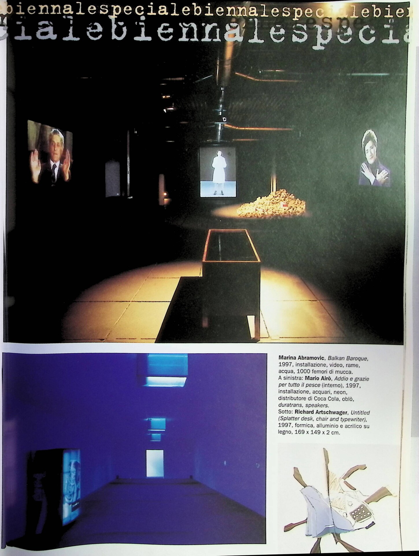 | Illustrazioni rilevanti | Juan Muñoz, 1997; Marina Abramović, Balkan Baroque, 1997 |