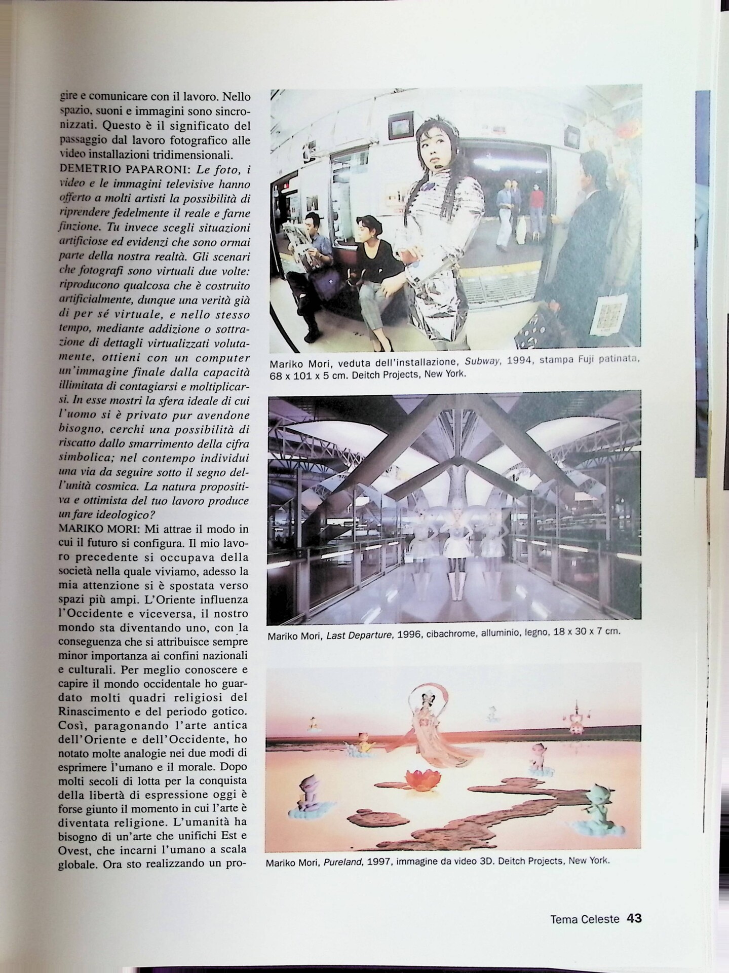 Demetrio Paparoni, Mariko Mori, «Tema Celeste», n. 65, ottobre-dicembre 1997, pp. 40-44