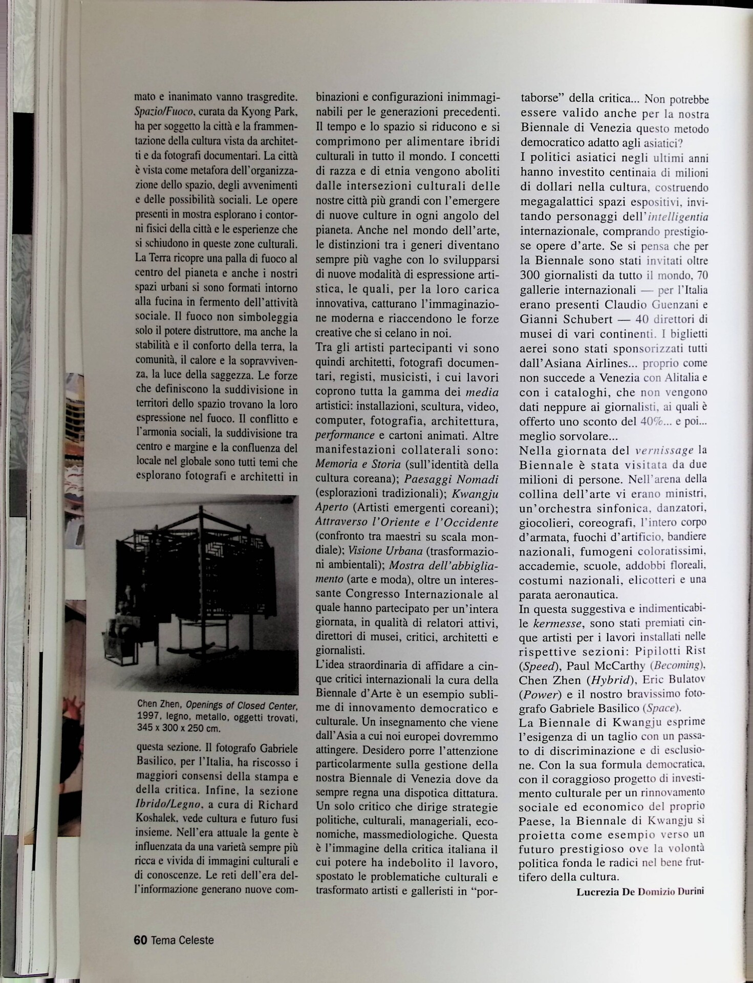 Lucrezia De Domizio Durini, Biennale di Kwangju, «Tema Celeste», n. 65, ottobre-dicembre 1997, pp. 58-60