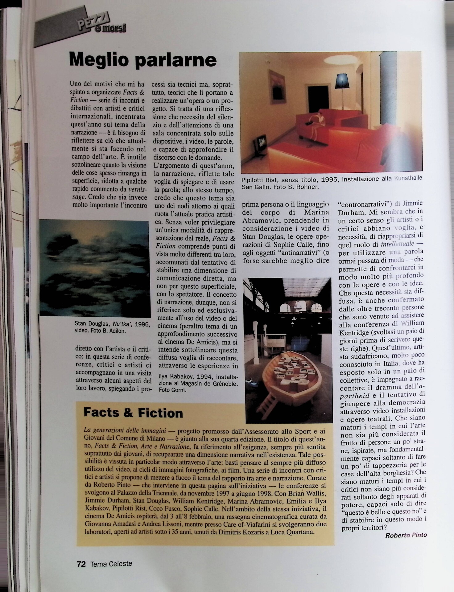 Roberto Pinto, Meglio parlarne, «Tema Celeste», n. 66, gennaio-marzo 1998, p. 72