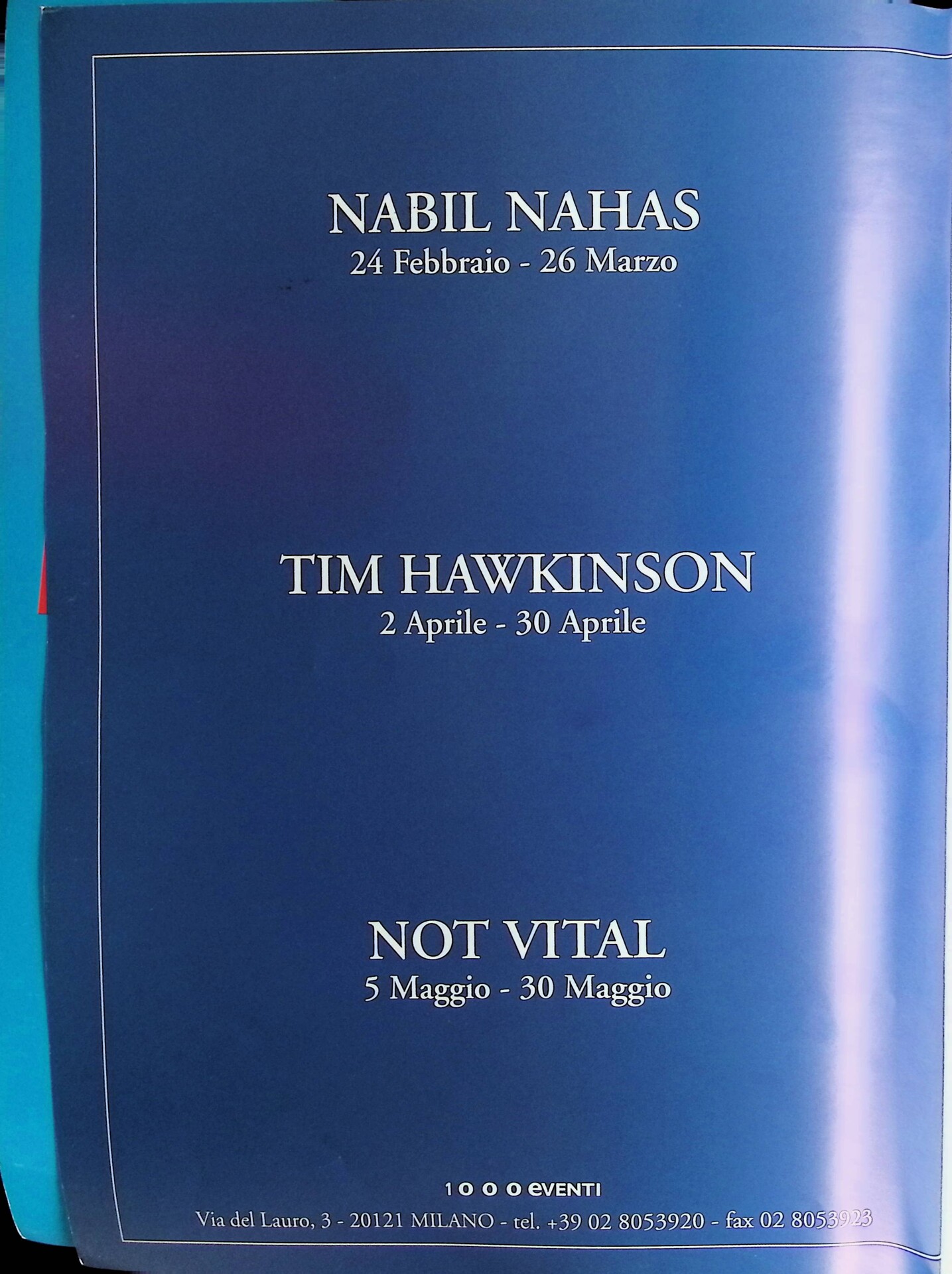 | Descrizione | Pubblicità della mostra di Nabil Nahas [libanese] alla Galleria 1000 Eventi di Milano. |