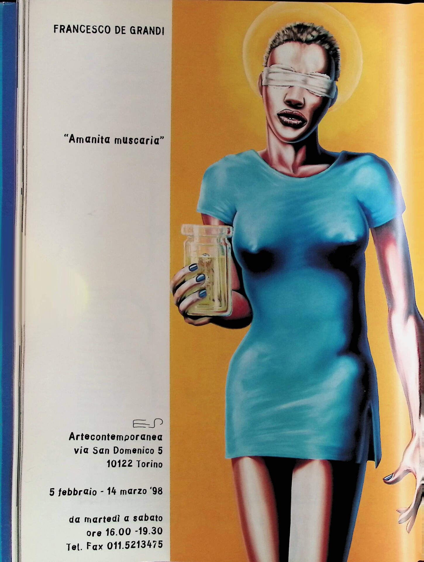 | Descrizione | Pubblicità della mostra Amanita Muscaria di Francesco De Grandi alla Galleria ES Arte Contemporanea di Torino, accompagnata da un'opera raffigurante una donna afrodiscendente. |