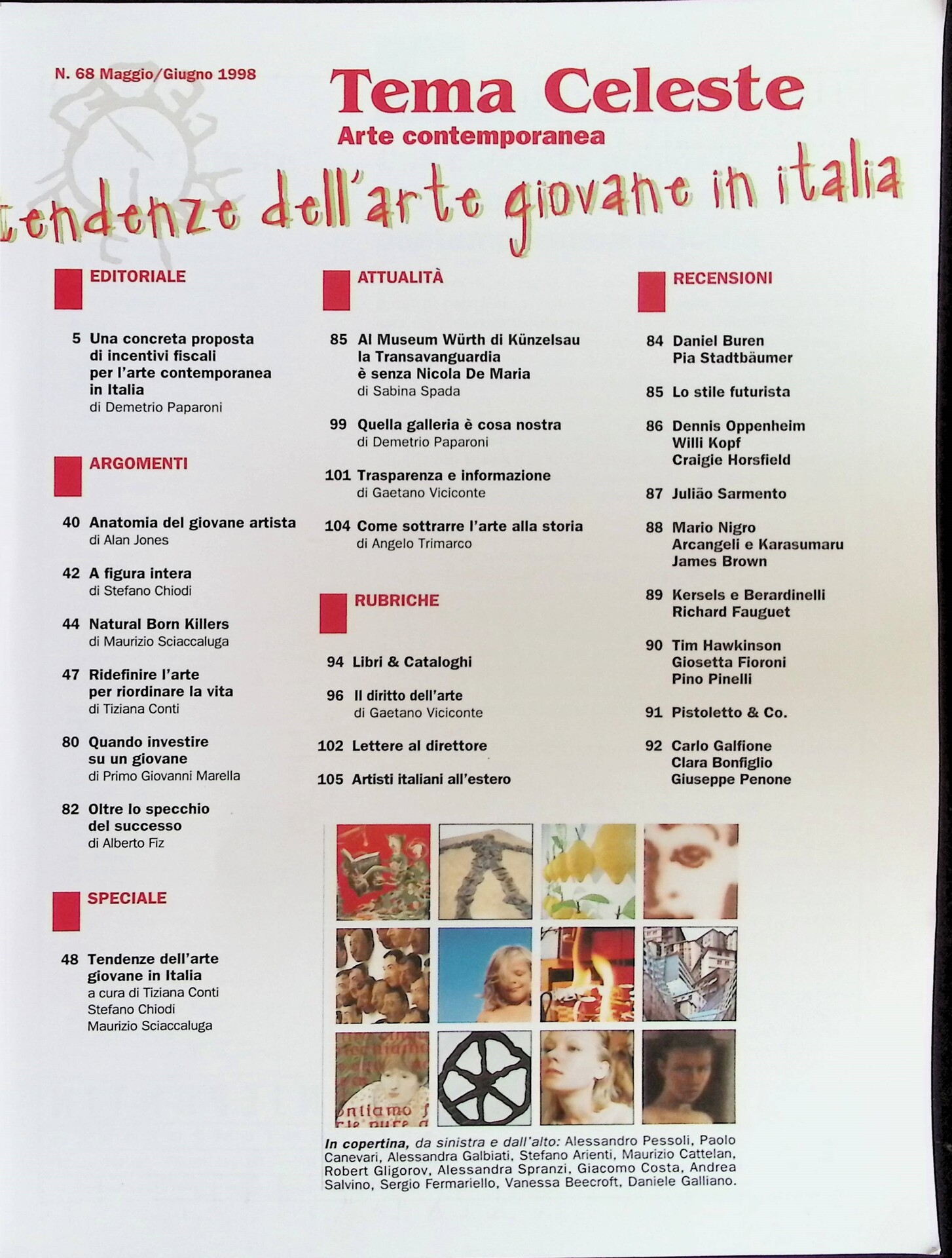 Stefano Chiodi, Tiziana Conti, Maurizio Sciaccaluga, Tendenze dell'arte giovane in Italia, «Tema Celeste», n. 68, maggio-giugno 1998, pp. 48-79