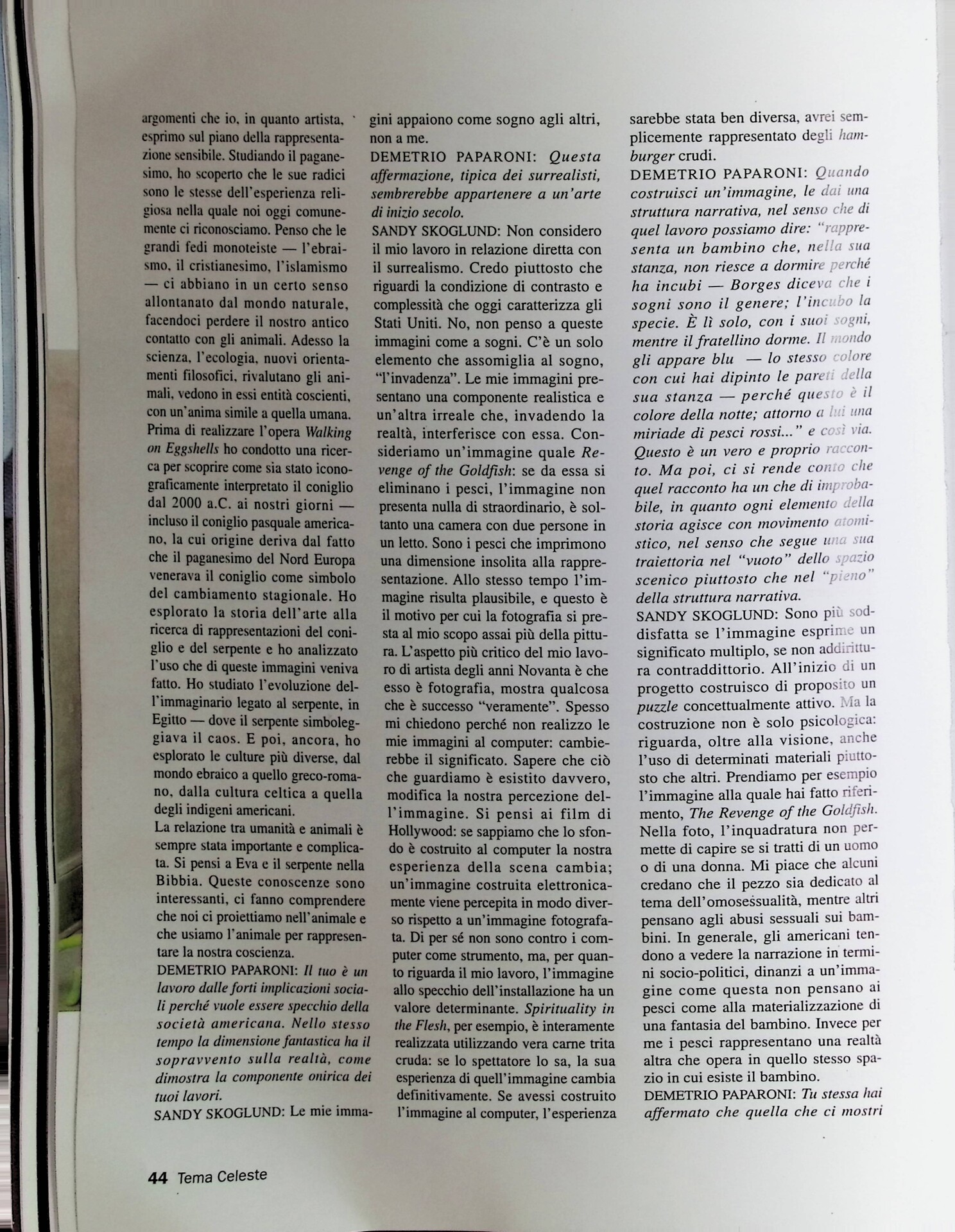 Demetrio Paparoni, Sandy Skoglund, «Tema Celeste», n. 69/70, luglio-settembre 1998, pp. 42-46