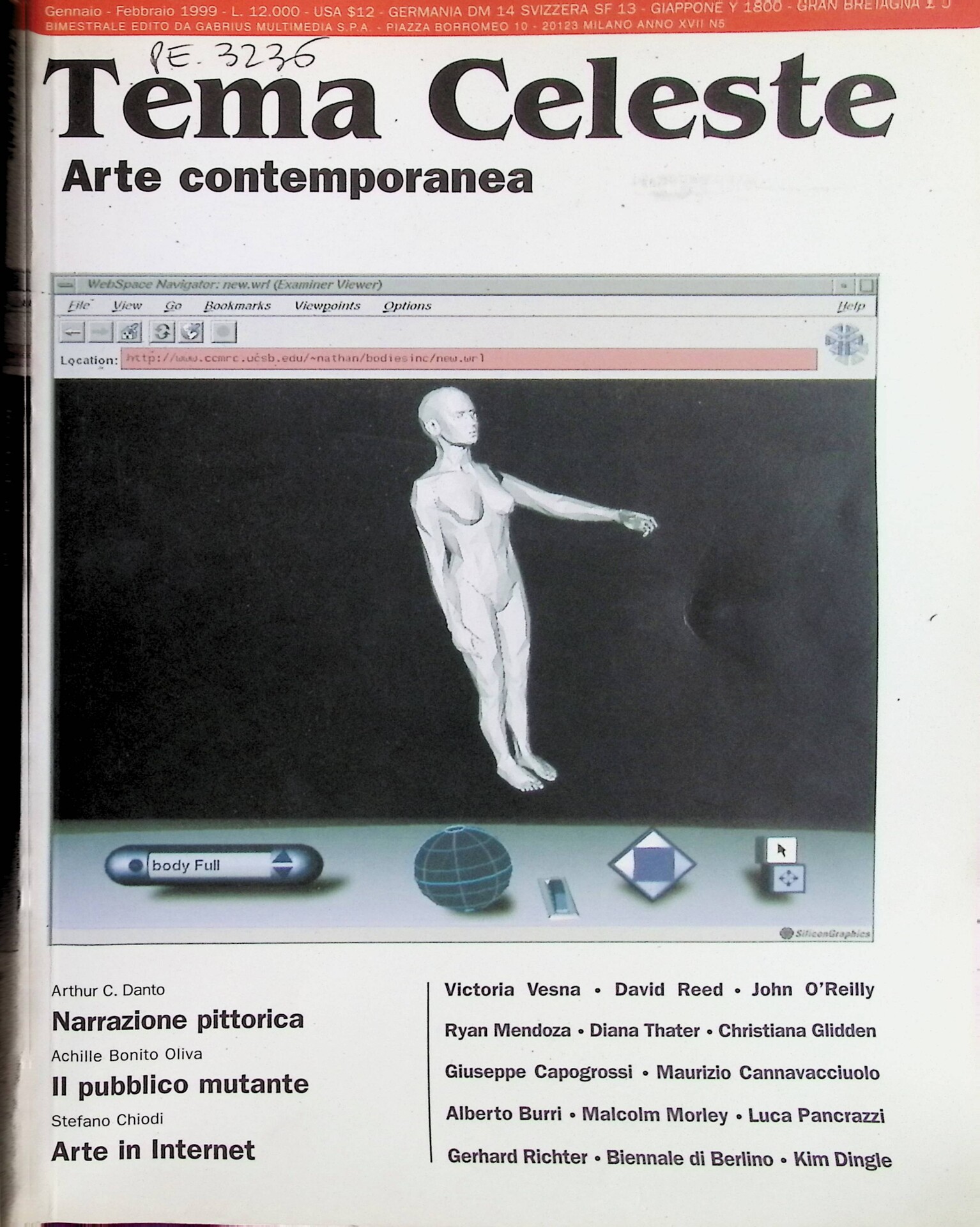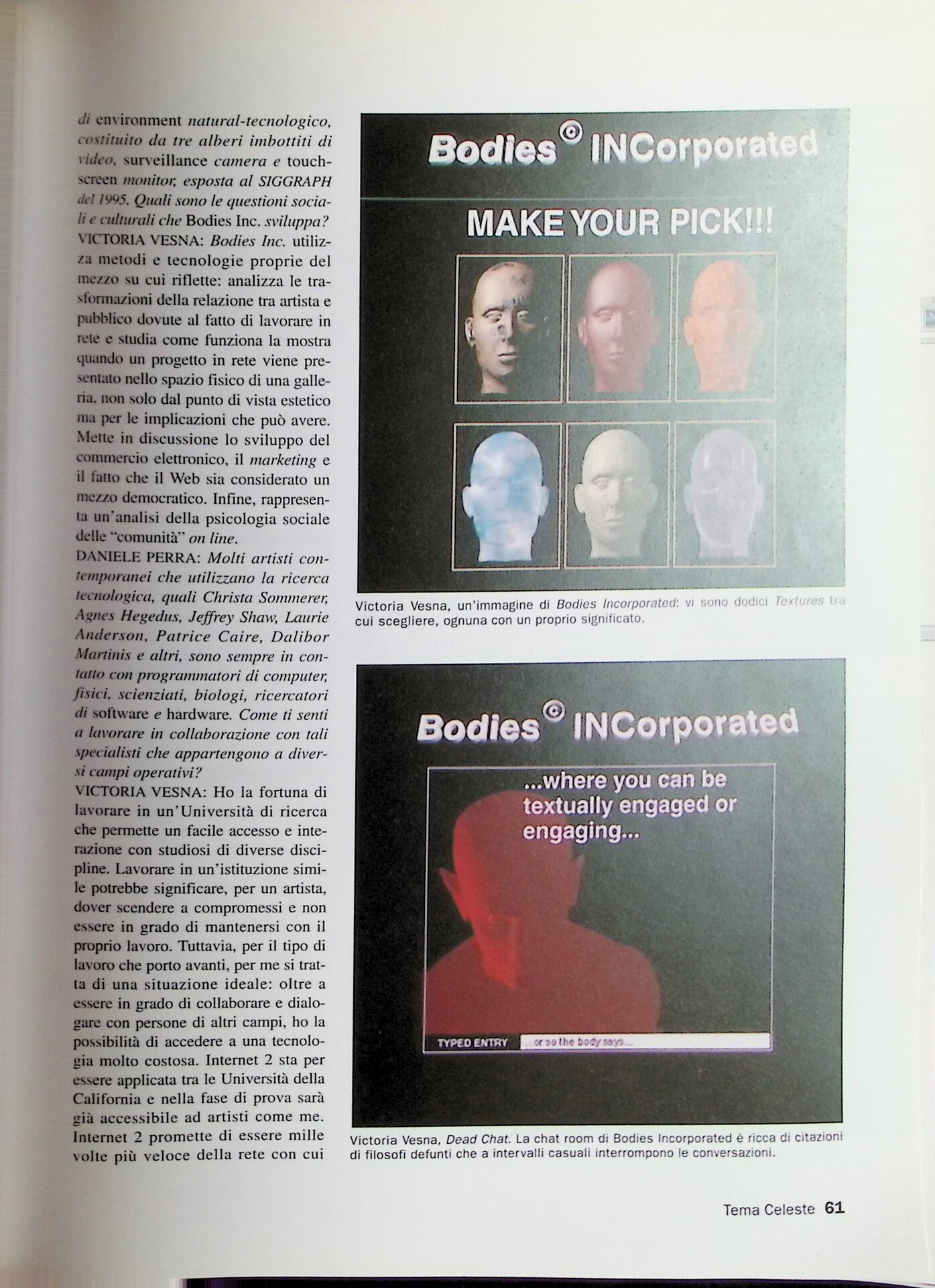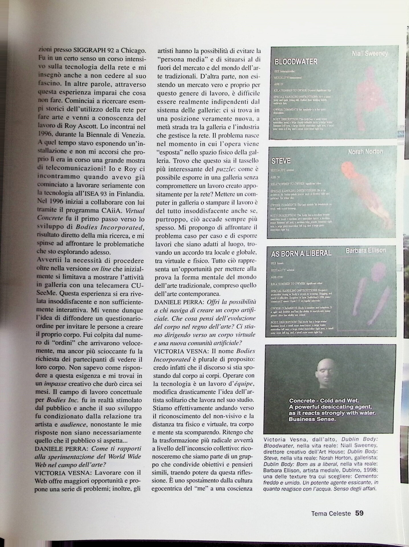 | Cit. bibliografica | Daniele Perra, Victoria Vesna, «Tema Celeste», n. 72, gennaio-febbraio 1999, pp. 58-63 |