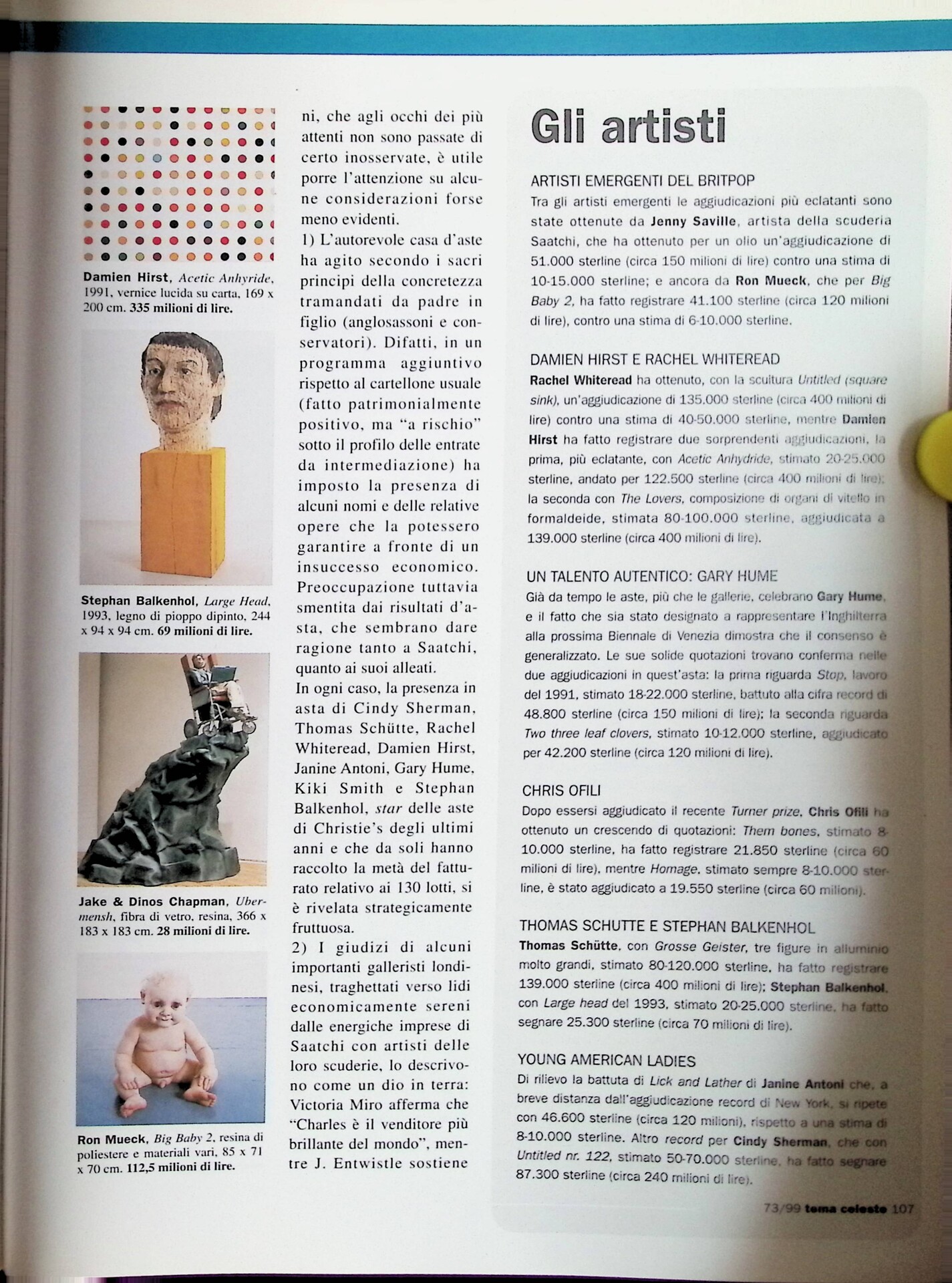 | Descrizione | Articolo sul rapporto tra artisti emergenti e mercato, in cui viene menzionato Chris Ofili. |