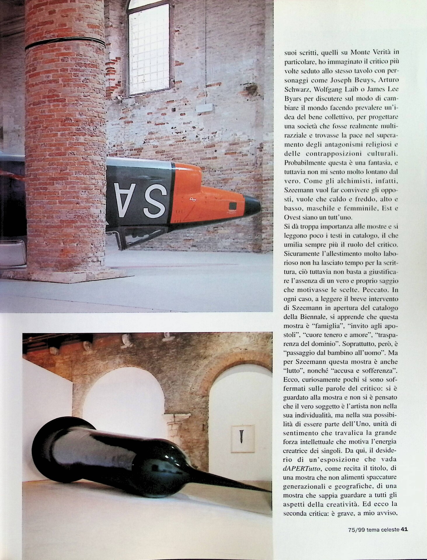 Demetrio Paparoni, Cuori solitari sulla laguna, «Tema Celeste», n. 75, luglio-settembre 1999, pp. 38-45