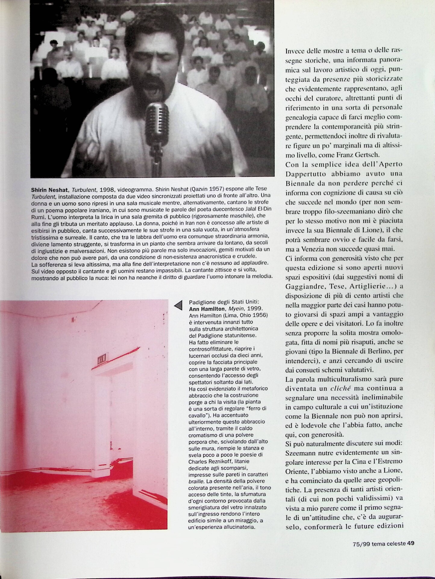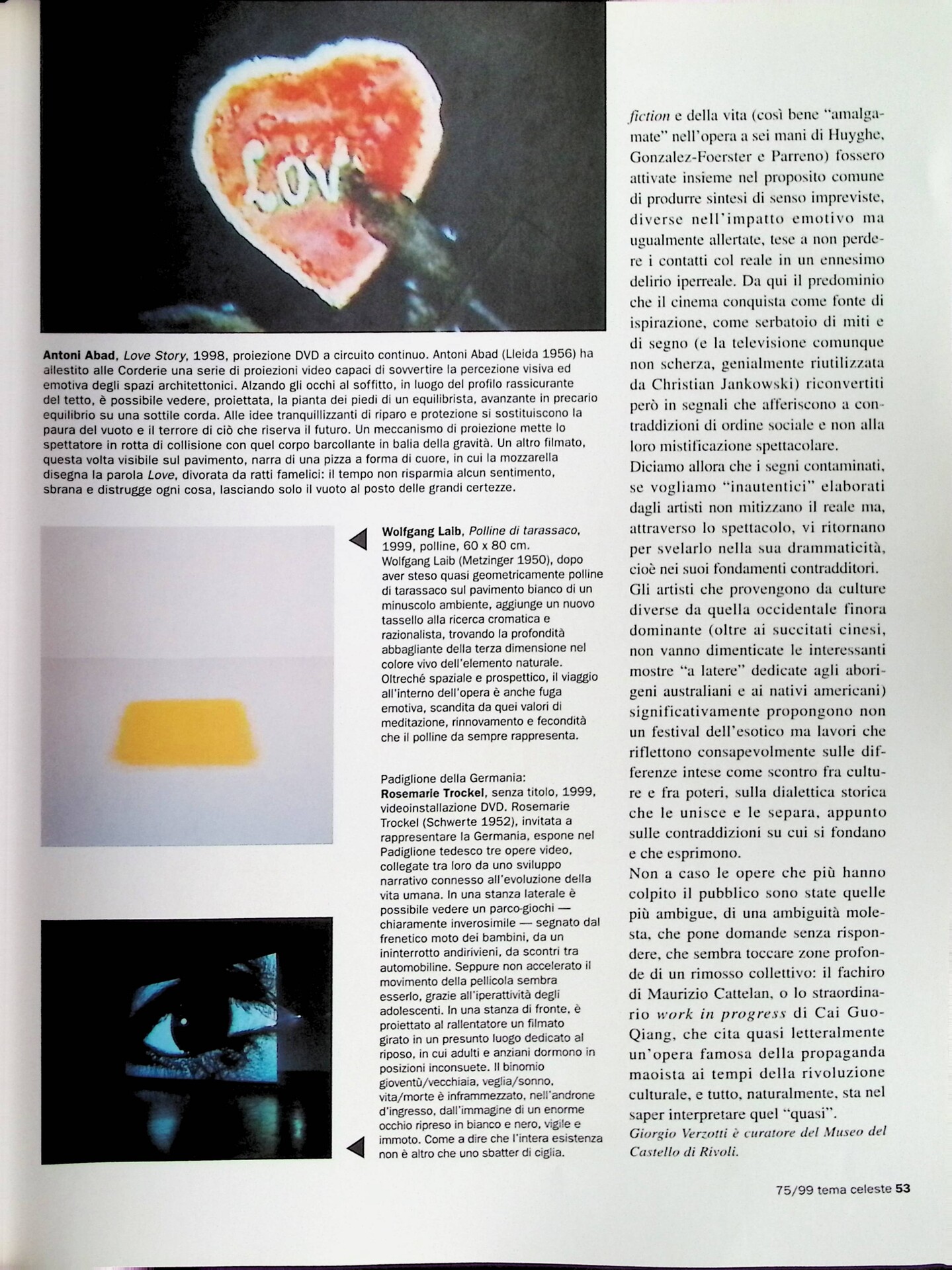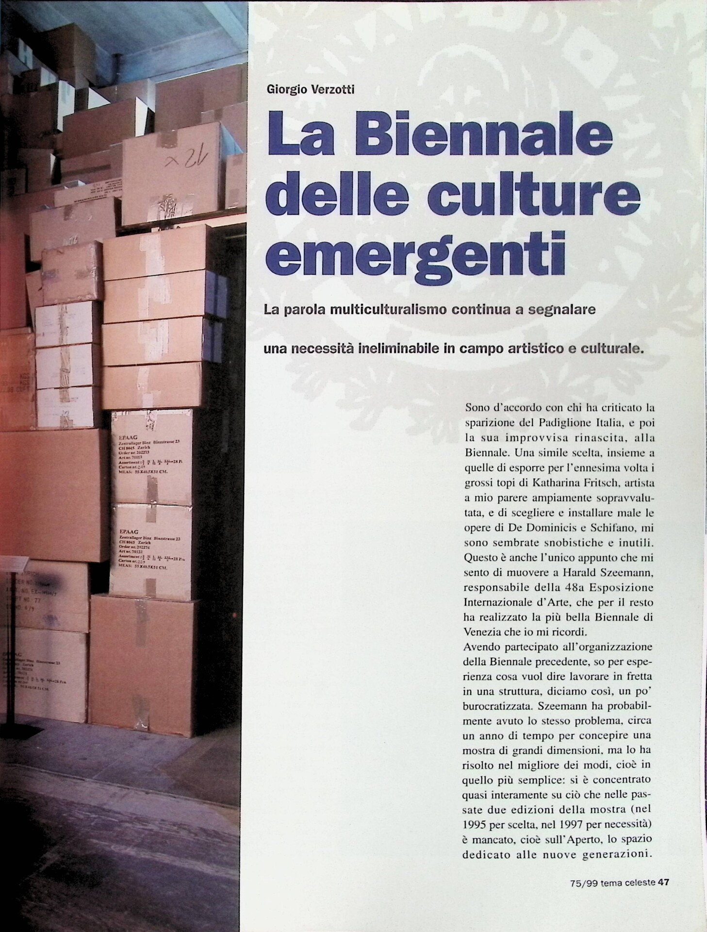 Giorgio Verzotti, La Biennale delle culture emergenti, «Tema Celeste», n. 75, luglio-settembre 1999, pp. 46-53