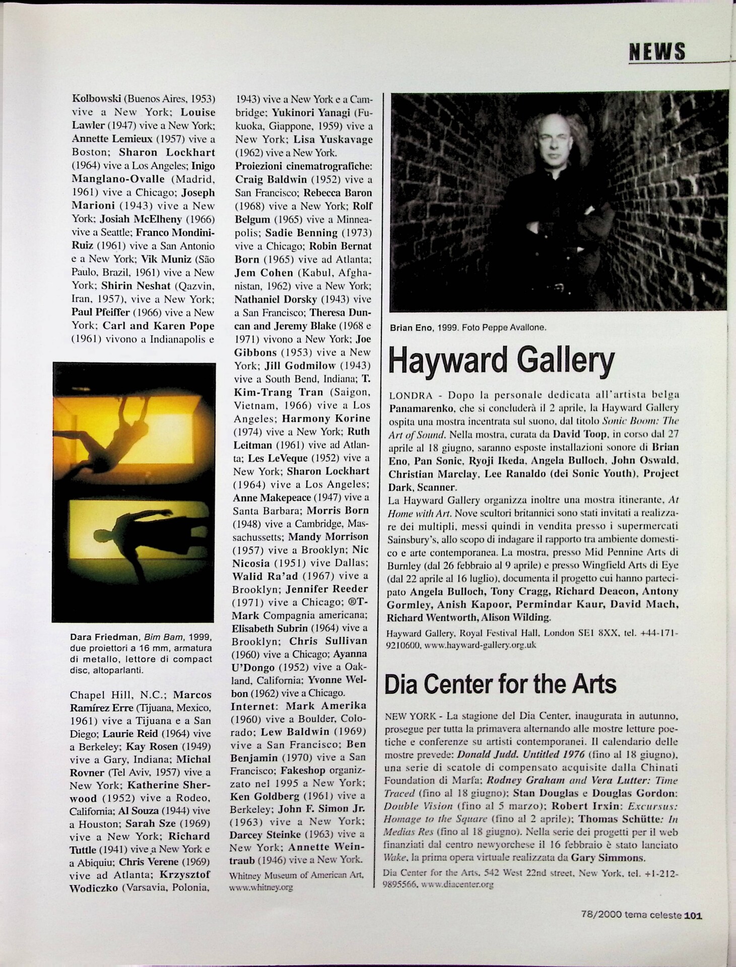 Biennale di Whitney, «Tema Celeste», n. 78, marzo-aprile 2000, pp. 100-101