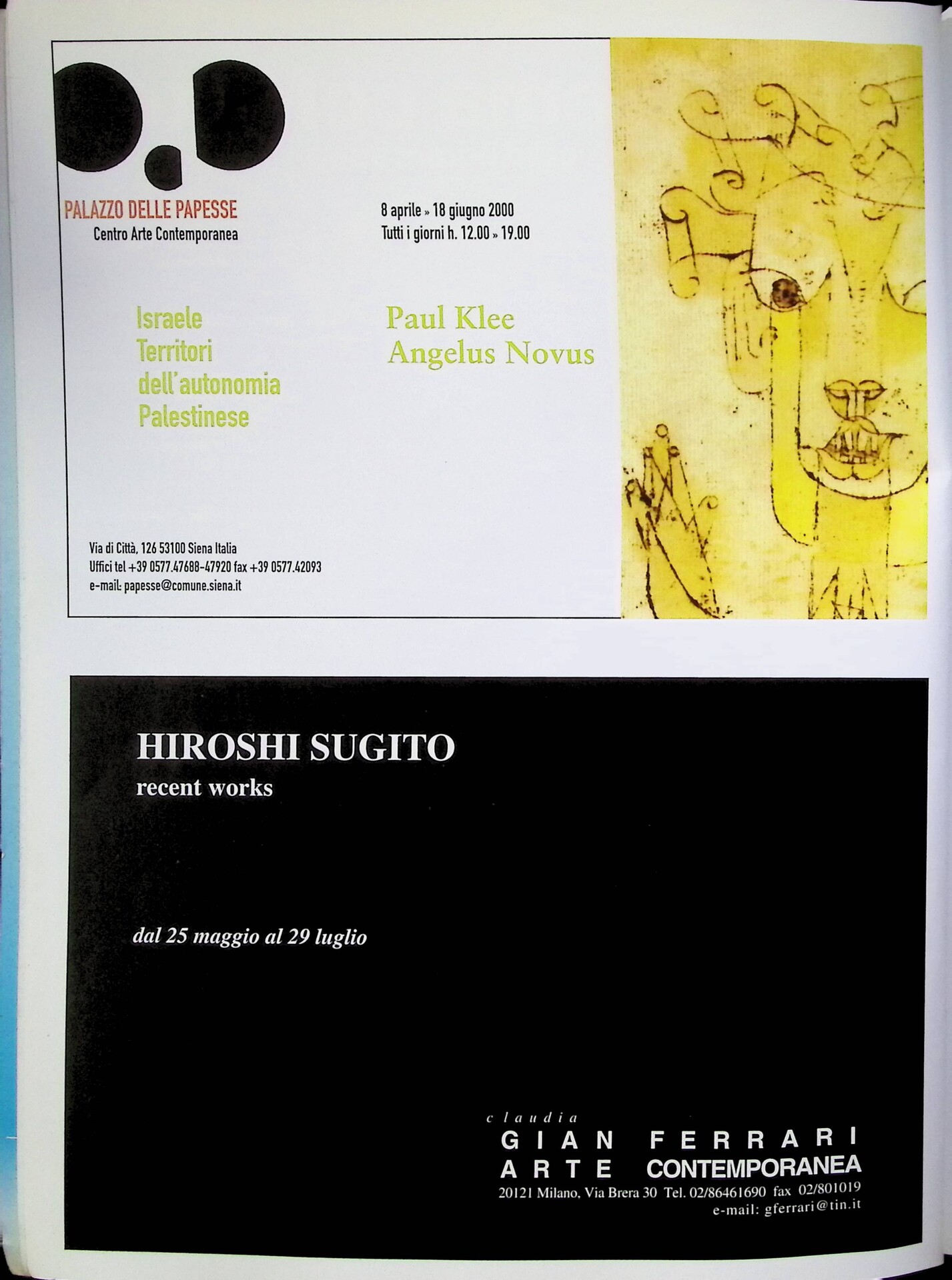 | Descrizione | Segnalazione della mostra tenutasi a Palazzo delle Papesse dal 8 aprile al 18 giugno 2000 dal titolo Israele Territori dell'autonomia Palesetinese. |