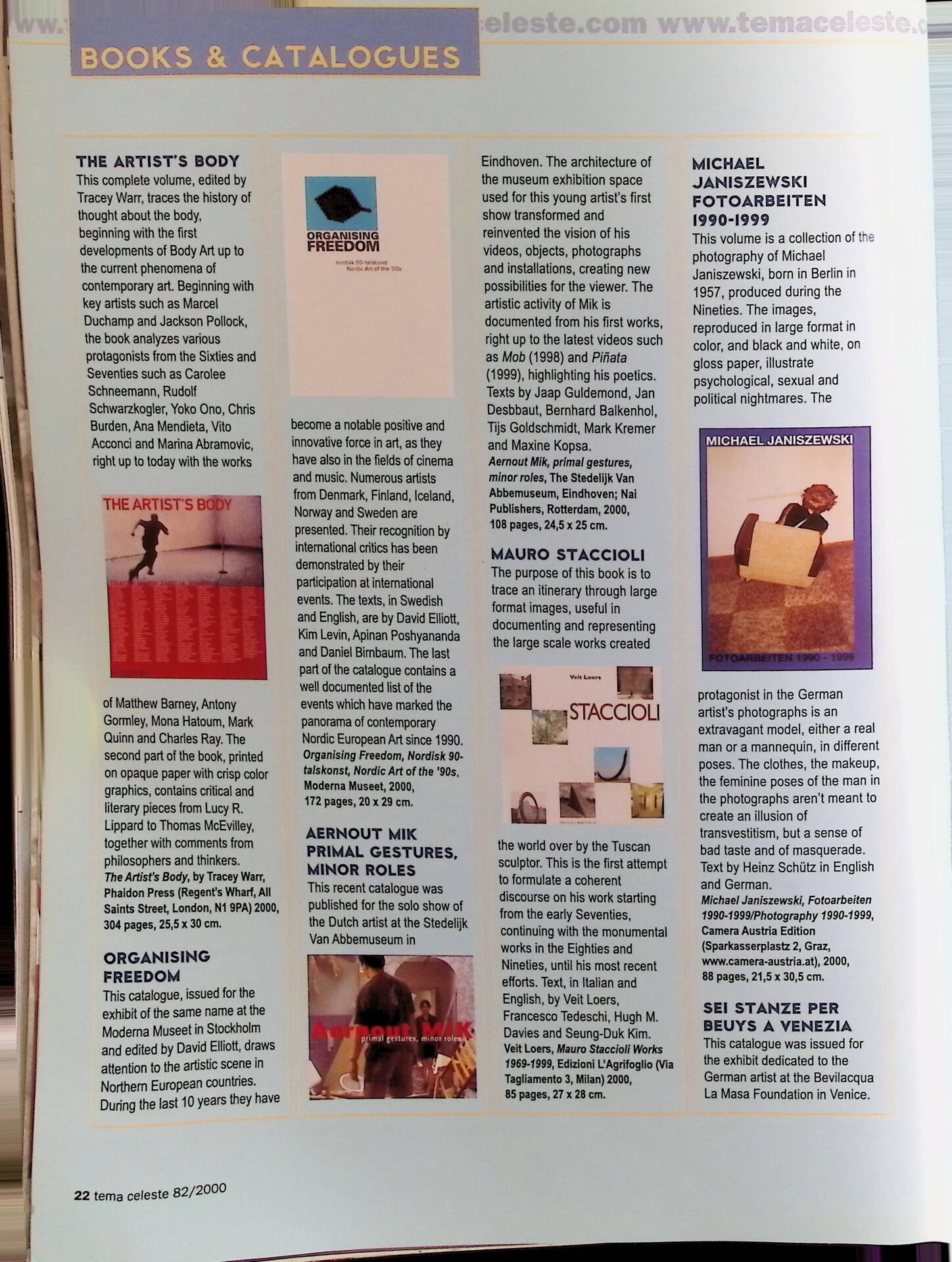 Tracey Warr, The Artist's Body, «Tema Celeste», n. 82, ottobre-dicembre 2000, p. 22