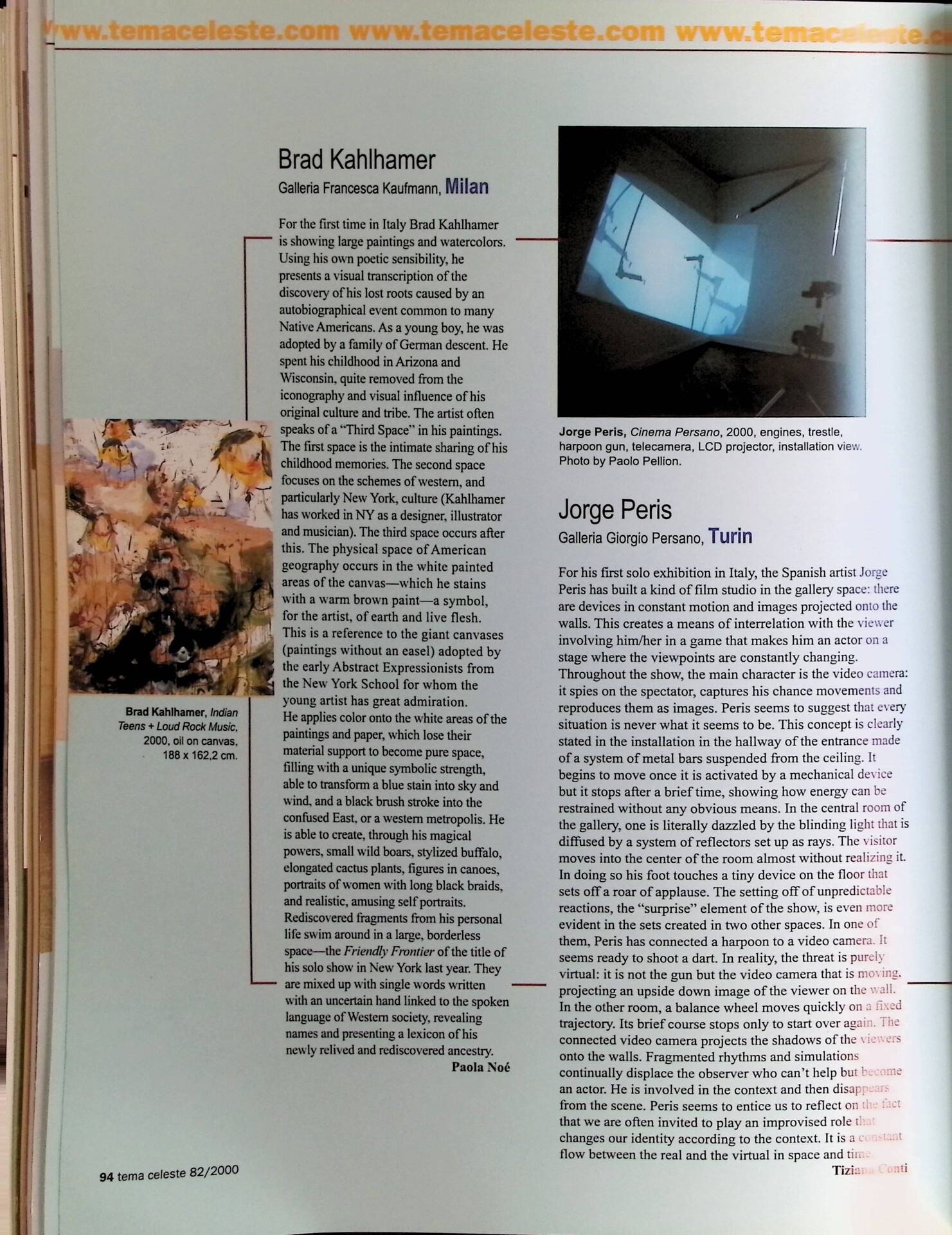 Paola Noè, Brad Kahlhamer, «Tema Celeste», n. 82, ottobre-dicembre 2000, p. 94