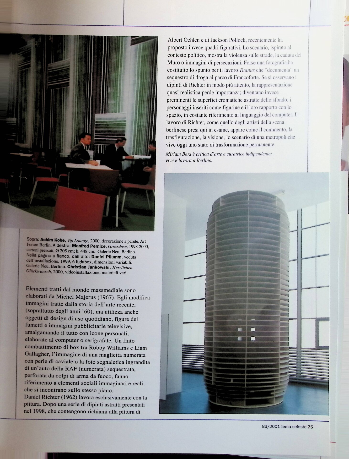 | Cit. bibliografica | Miriam Bers, Berlino, dal neopop alla crossculture, «Tema Celeste», n. 83, gennaio-febbraio 2001, pp. 70-75 |