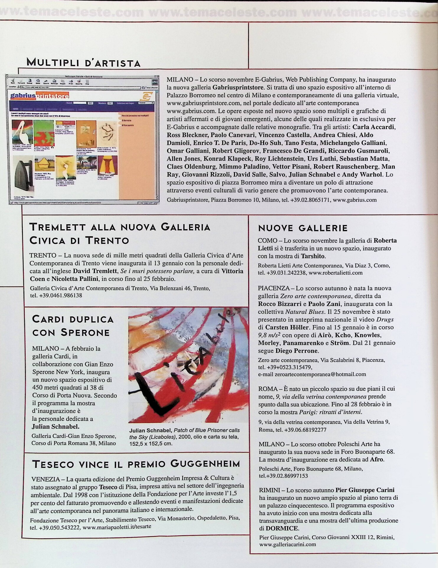 Multipli d'artista, «Tema Celeste», n. 83, gennaio-febbraio 2001, p.n.n.