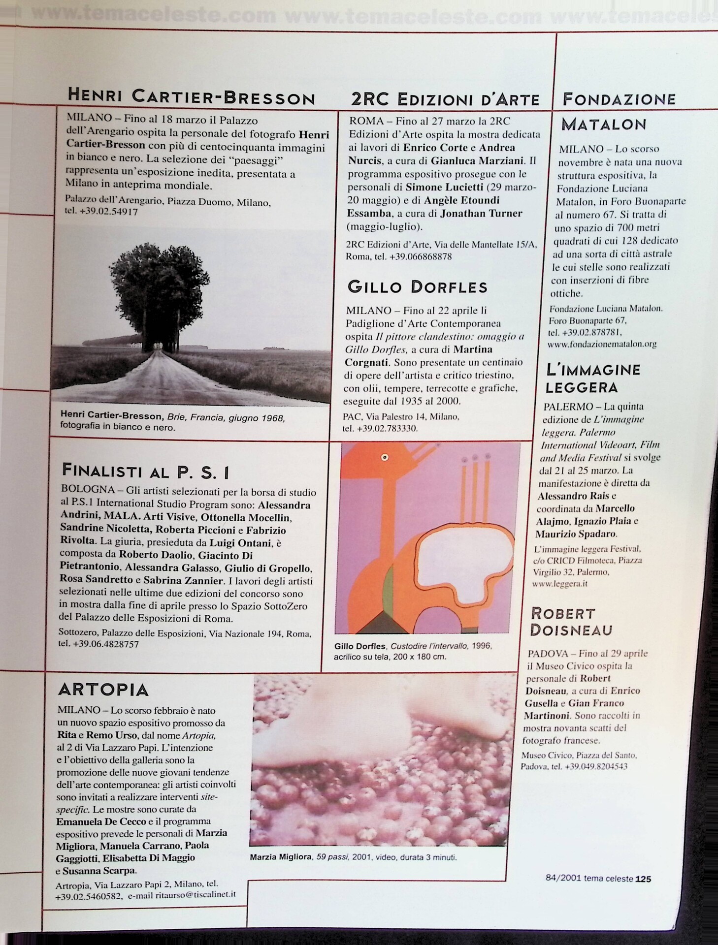 2RC Edizioni d'Arte, «Tema Celeste», n. 84, marzo-aprile 2001, p.n.n.
