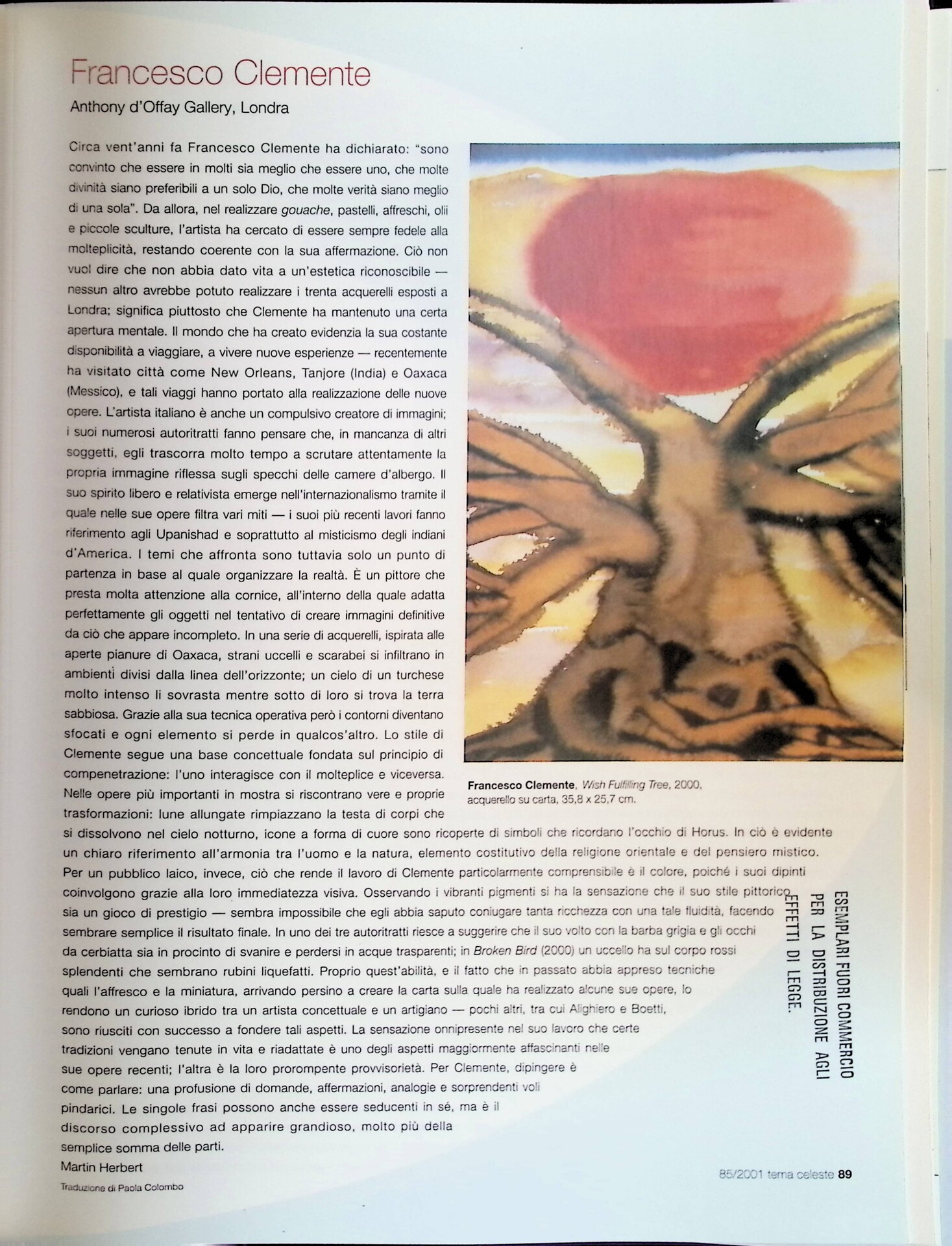 Martin Herbert, Francesco Clemente, «Tema Celeste», n. 85, maggio-giugno 2001, p. 89