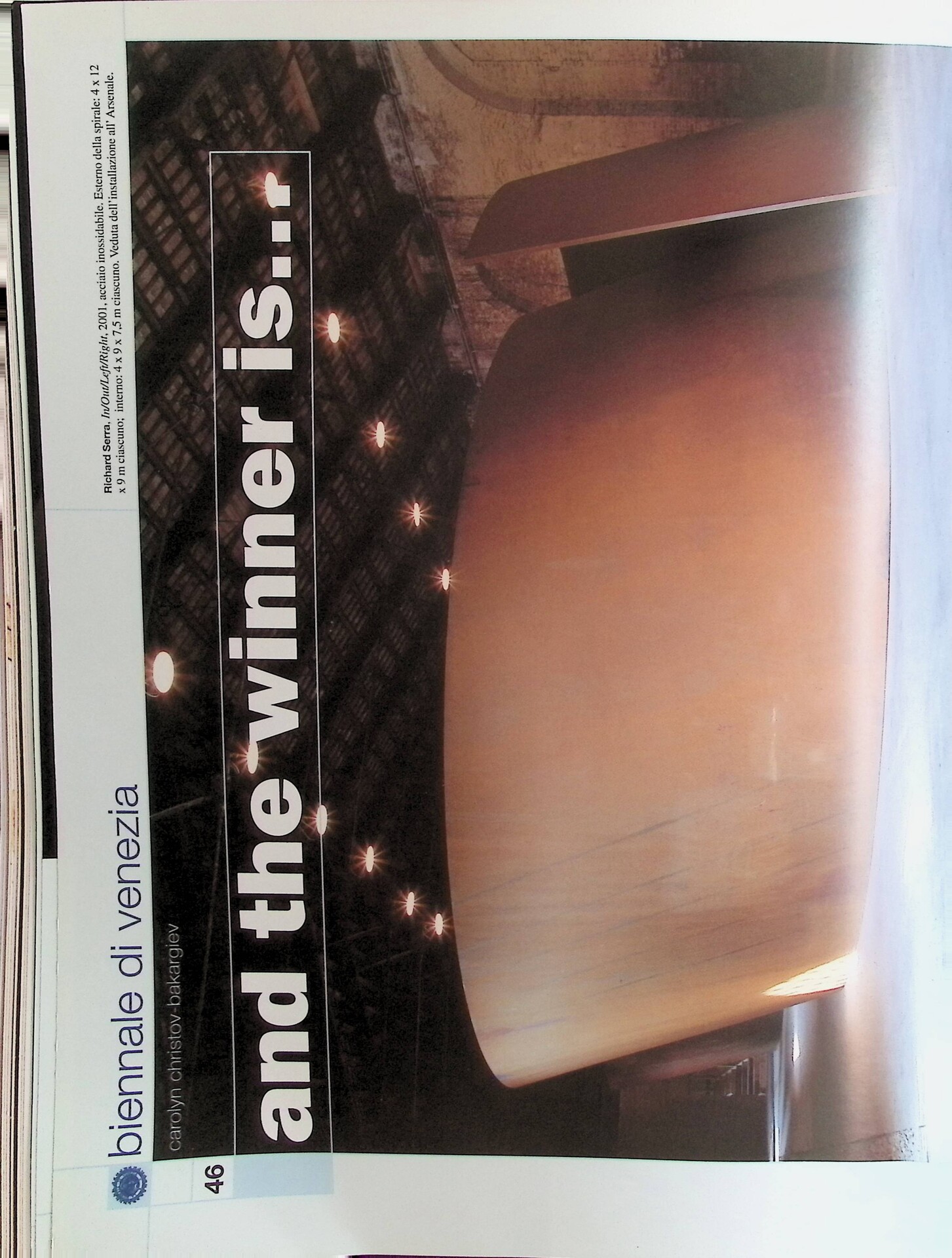 Carolyn Christov-Bakargiev, Biennale di Venezia: And the winner is…, «Tema Celeste», n. 86, luglio-settembre 2001, pp. 46-51