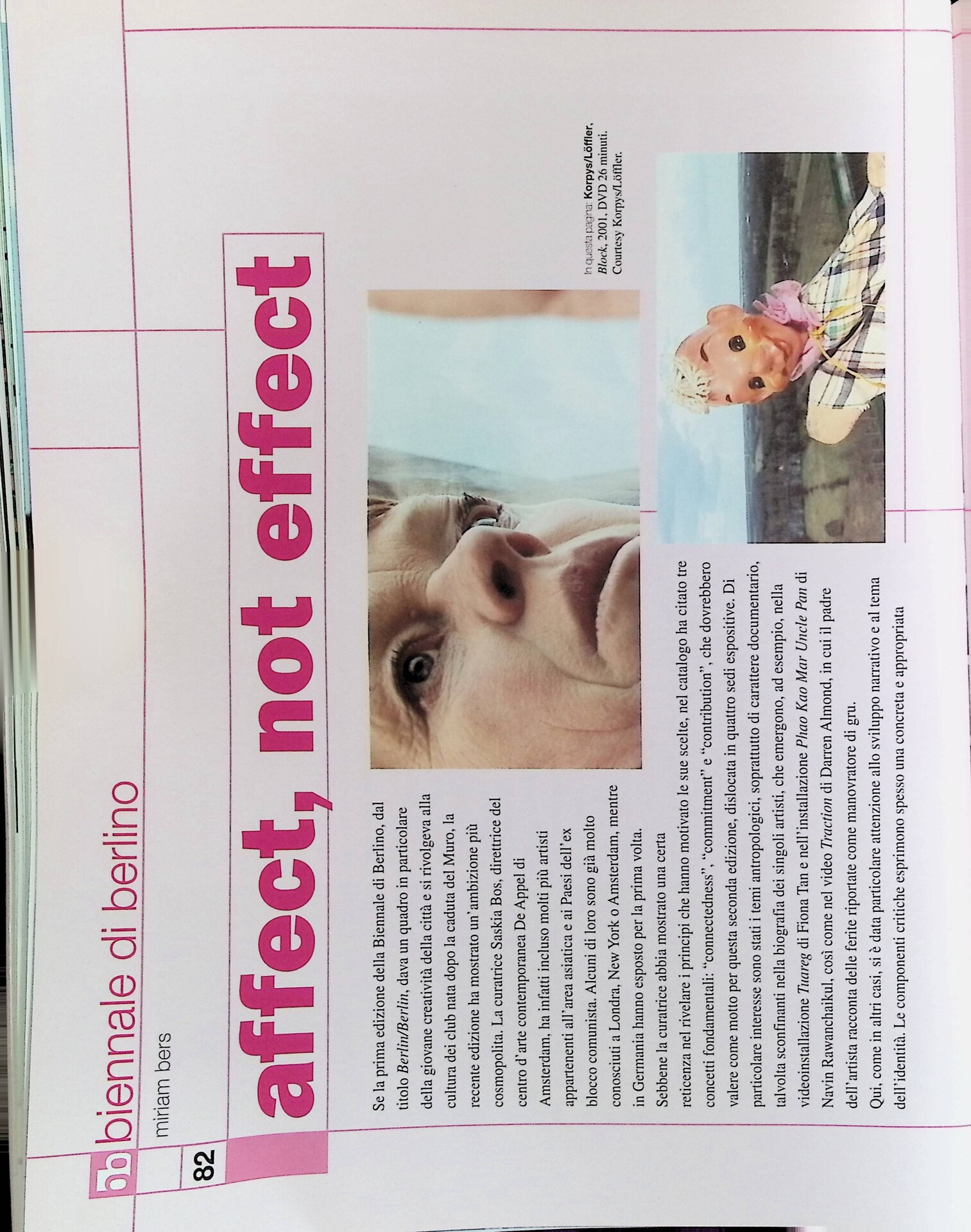 Miriam Bers, Biennale di Berlino: Affect, non effect, «Tema Celeste», n. 86, luglio-settembre 2001, pp. 82-87
