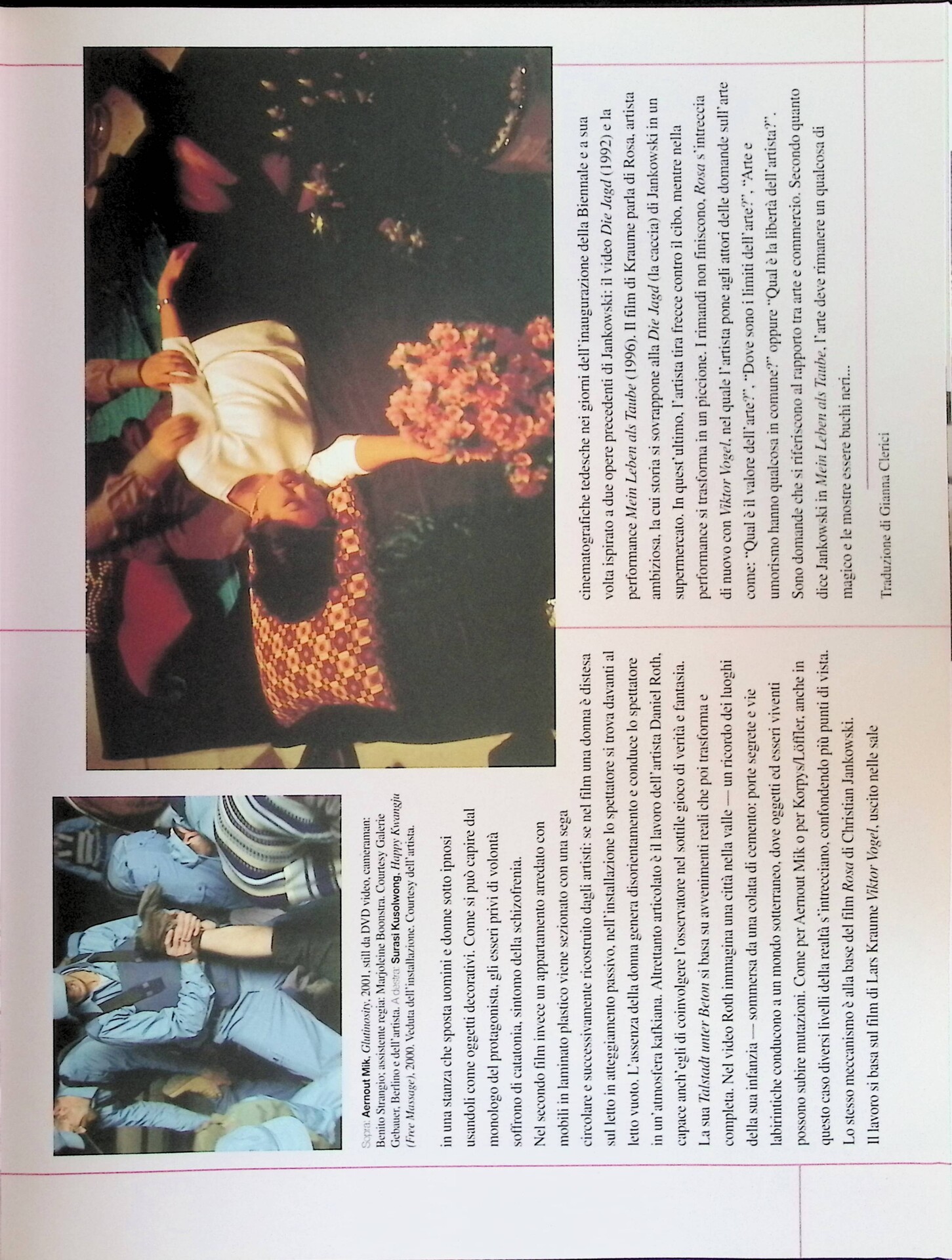 | Descrizione | Articolo dedicato alla Biennale di Berlino, con particolare attenzione ad artisti provenienti dai Paesi del “ex blocco comunista” e dall'Asia, tra cui Fiona Tan [indonesiana], Tsyuoshi Ozawa [giapponese], Carlos Amorales [messicano], Navin Rawanchaikul e Surasi Kusulwong [thailandesi]. |