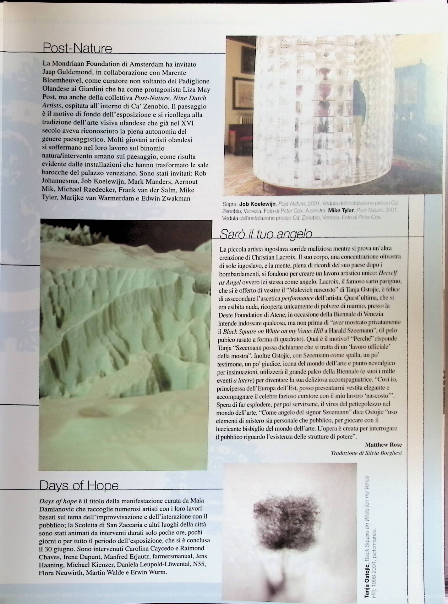 Days of Hope, «Tema Celeste», n. 86, luglio-settembre 2001, p.n.n.