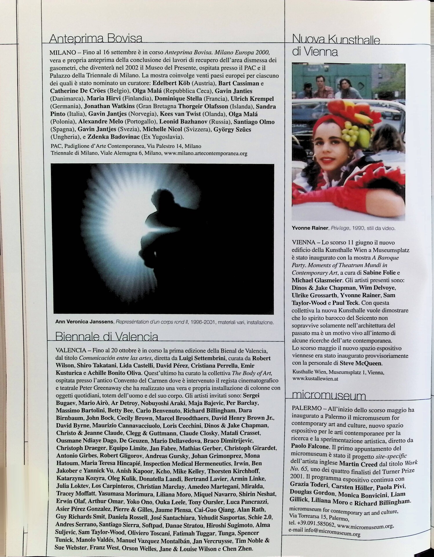 | Descrizione | Segnalazione della mostra Anteprima Bovisa. Milano Europa 2000, ospitata al PAC e al Palazzo della Triennale di Milano, con la partecipazione, tra gli artisti invitati, di Leonid Bazhanov [russo]. |