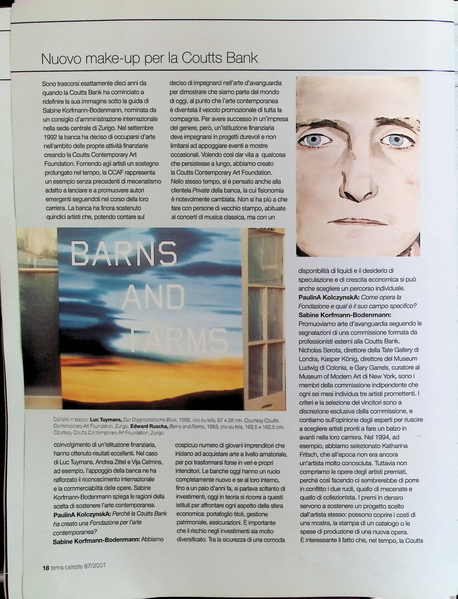 Paulina Kolczynska, Nuovo make-up per la Coutts Bank, «Tema Celeste», n. 87, ottobre-dicembre 2001, pp. 18-19