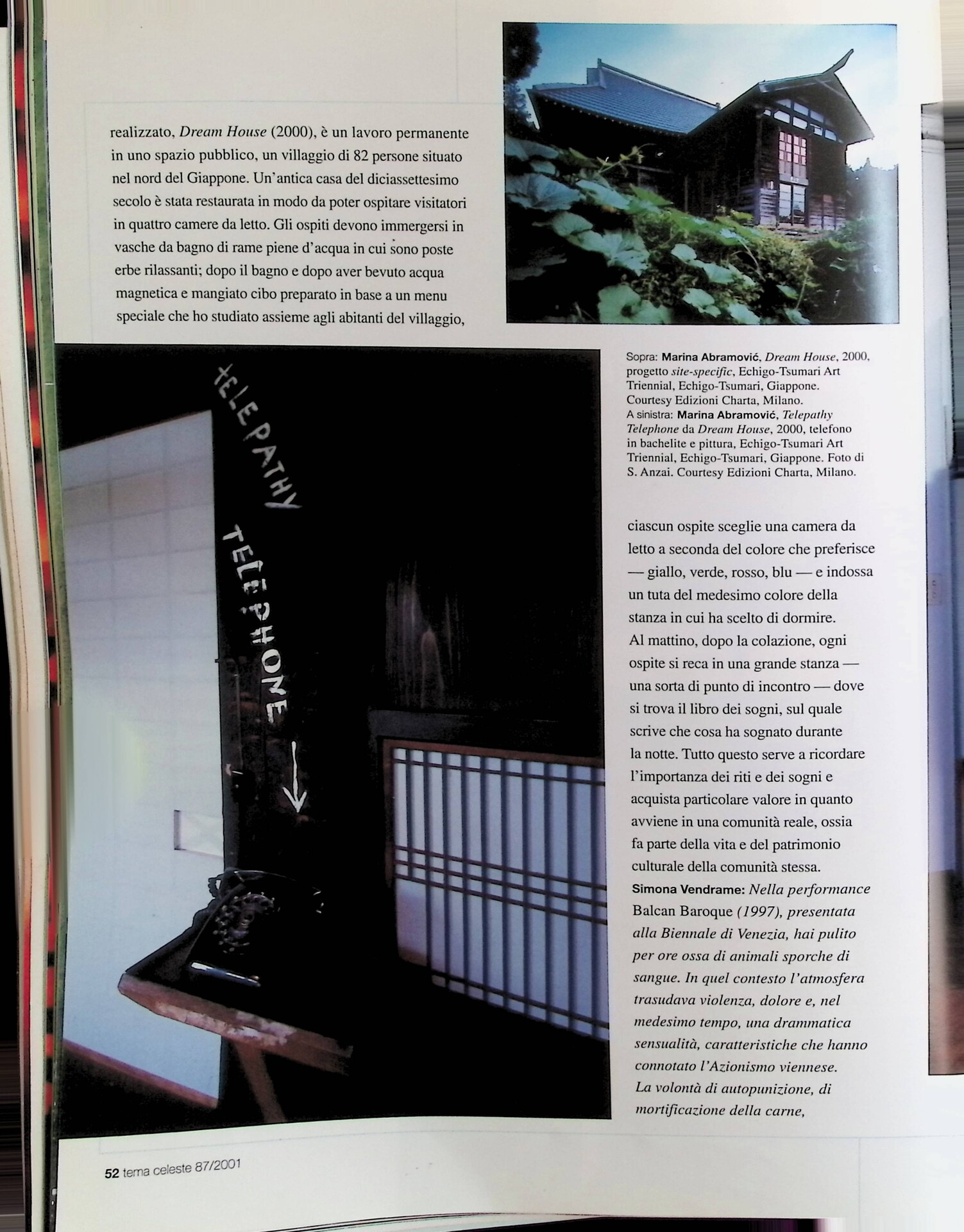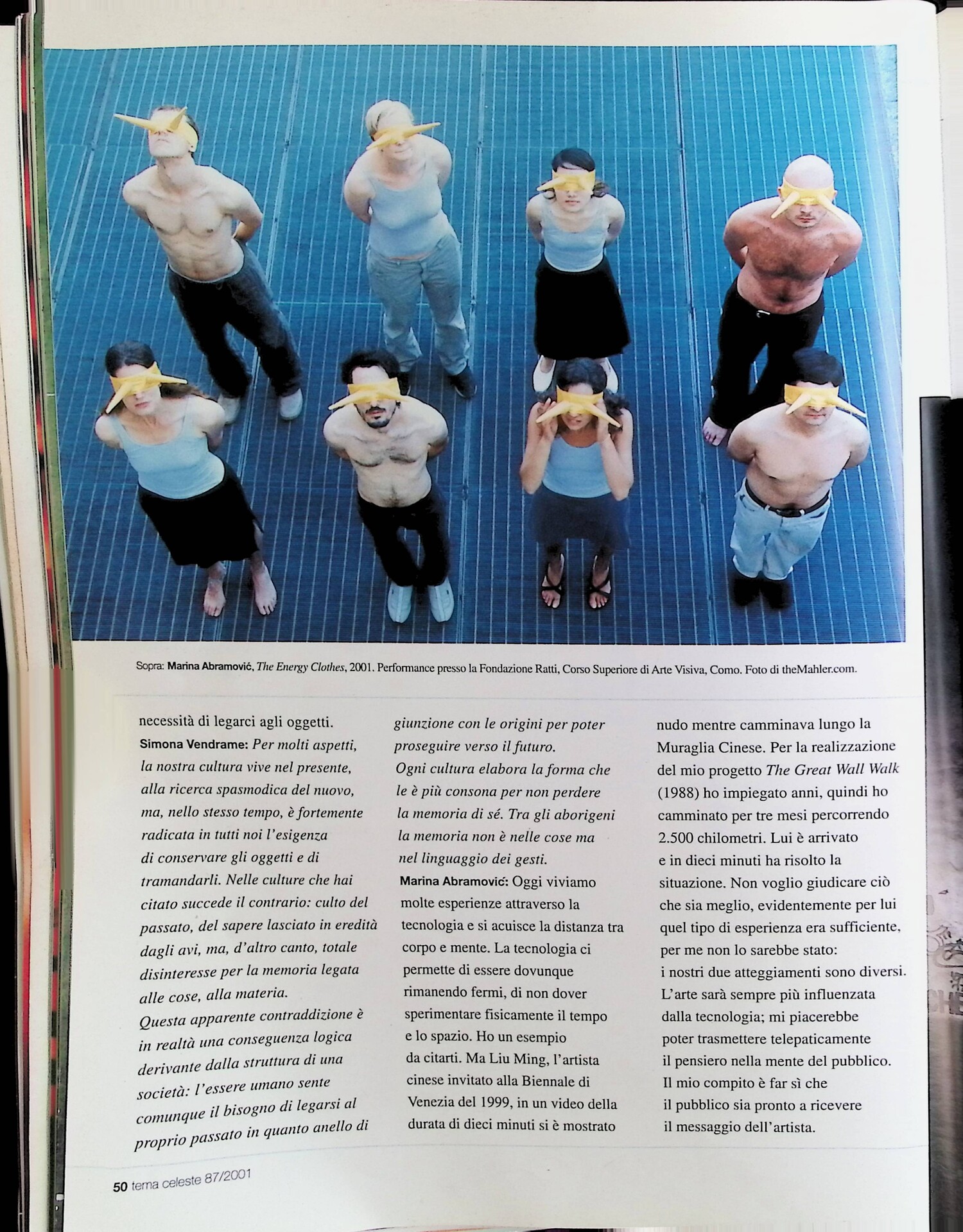 Simona Vendrame, Marina Abramović, «Tema Celeste», n. 87, ottobre-dicembre 2001, pp. 48-53