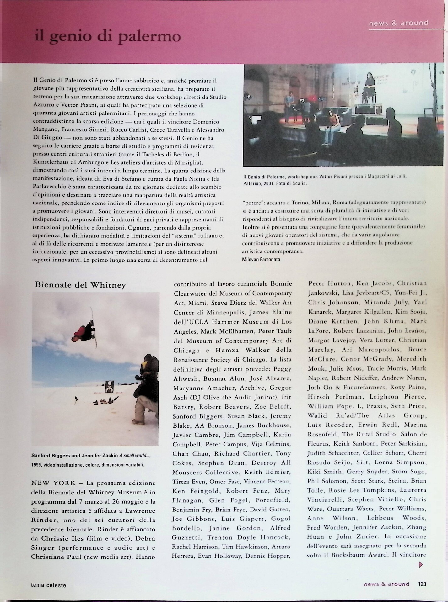 Biennale del Whitney, «Tema Celeste», n. 88/89, gennaio-febbraio 2002, p. 123