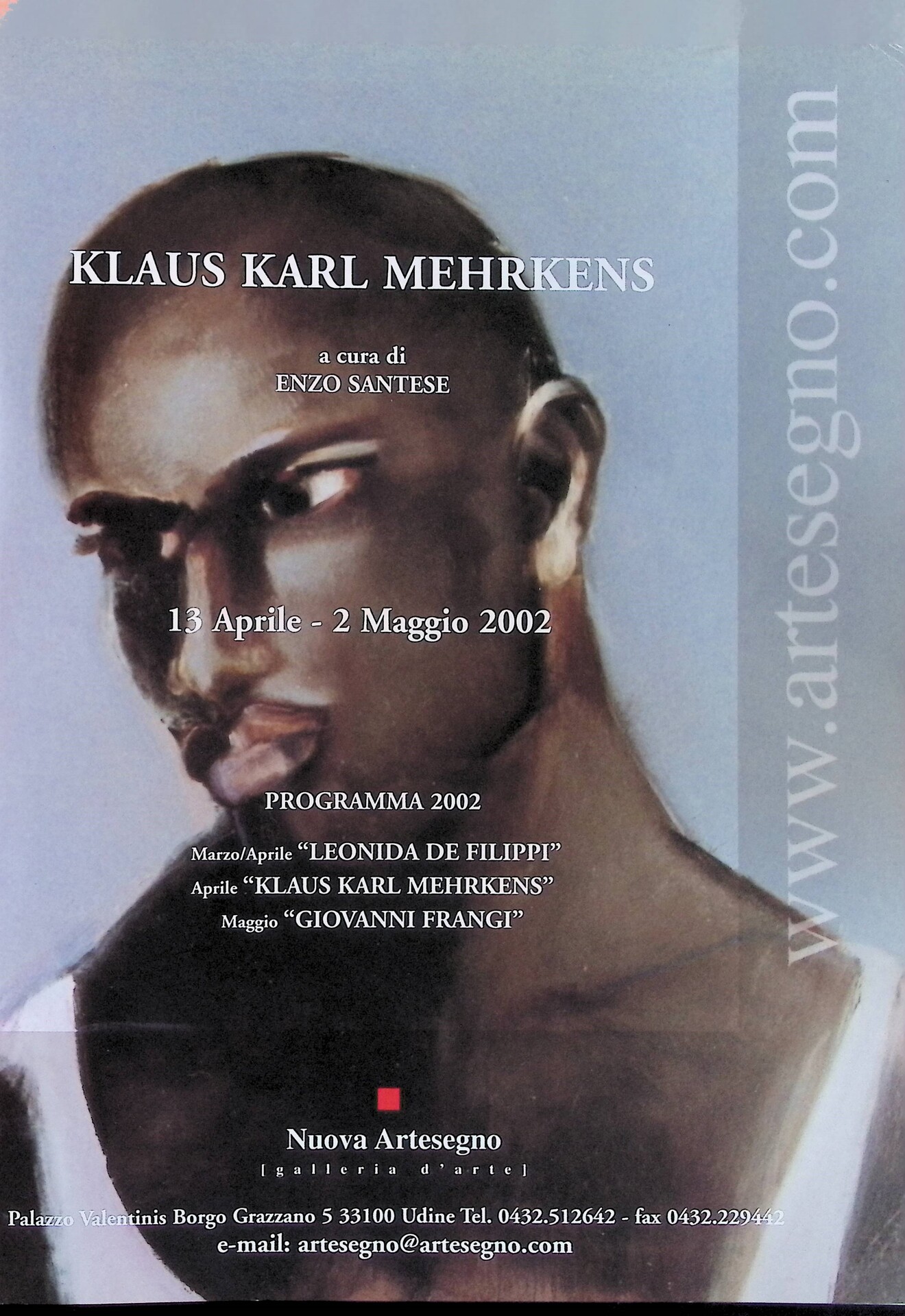 | Descrizione | Pubblicità della mostra di Klaus Karl Mehrkens alla Galleria Nuova Artesegno a Udine, con un’opera che raffigura un uomo afrodiscendente. |