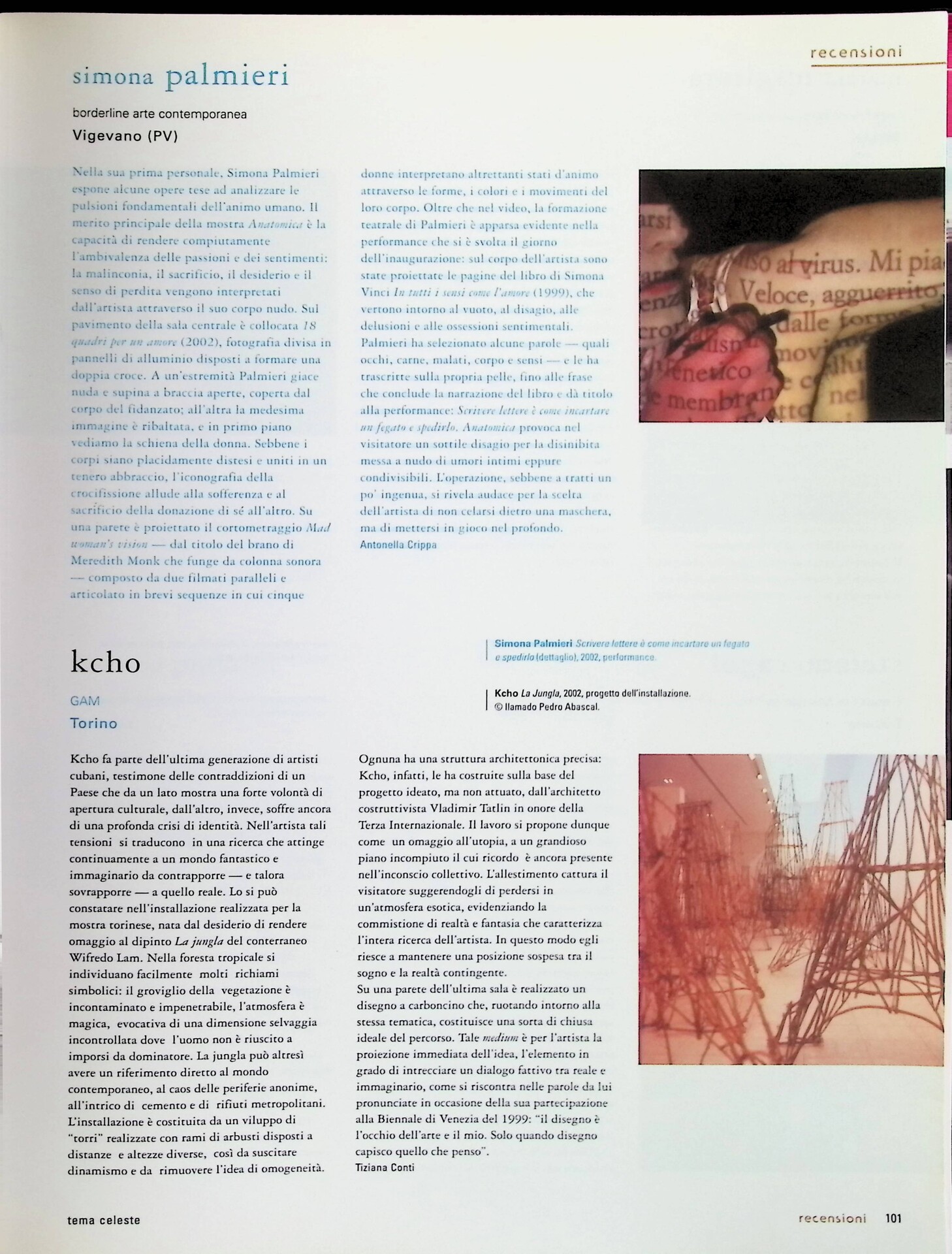 Tiziana Conti, Kcho, «Tema Celeste», n. 90, marzo-aprile 2002, p. 101