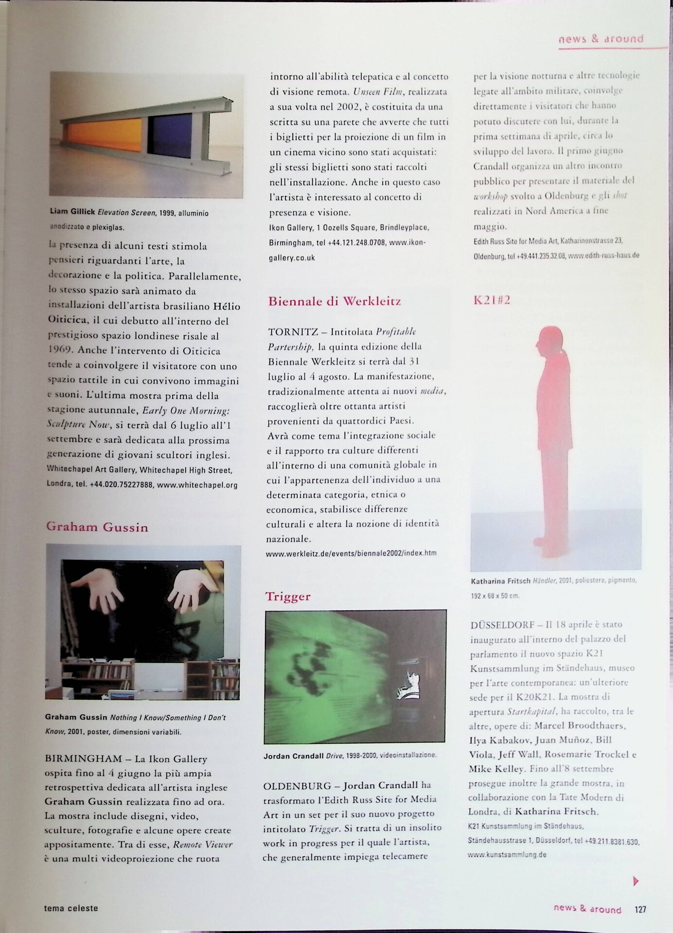 Liam Gillick/Hélio Oiticica, «Tema Celeste», n. 91, maggio-giugno 2002, pp. 126-127