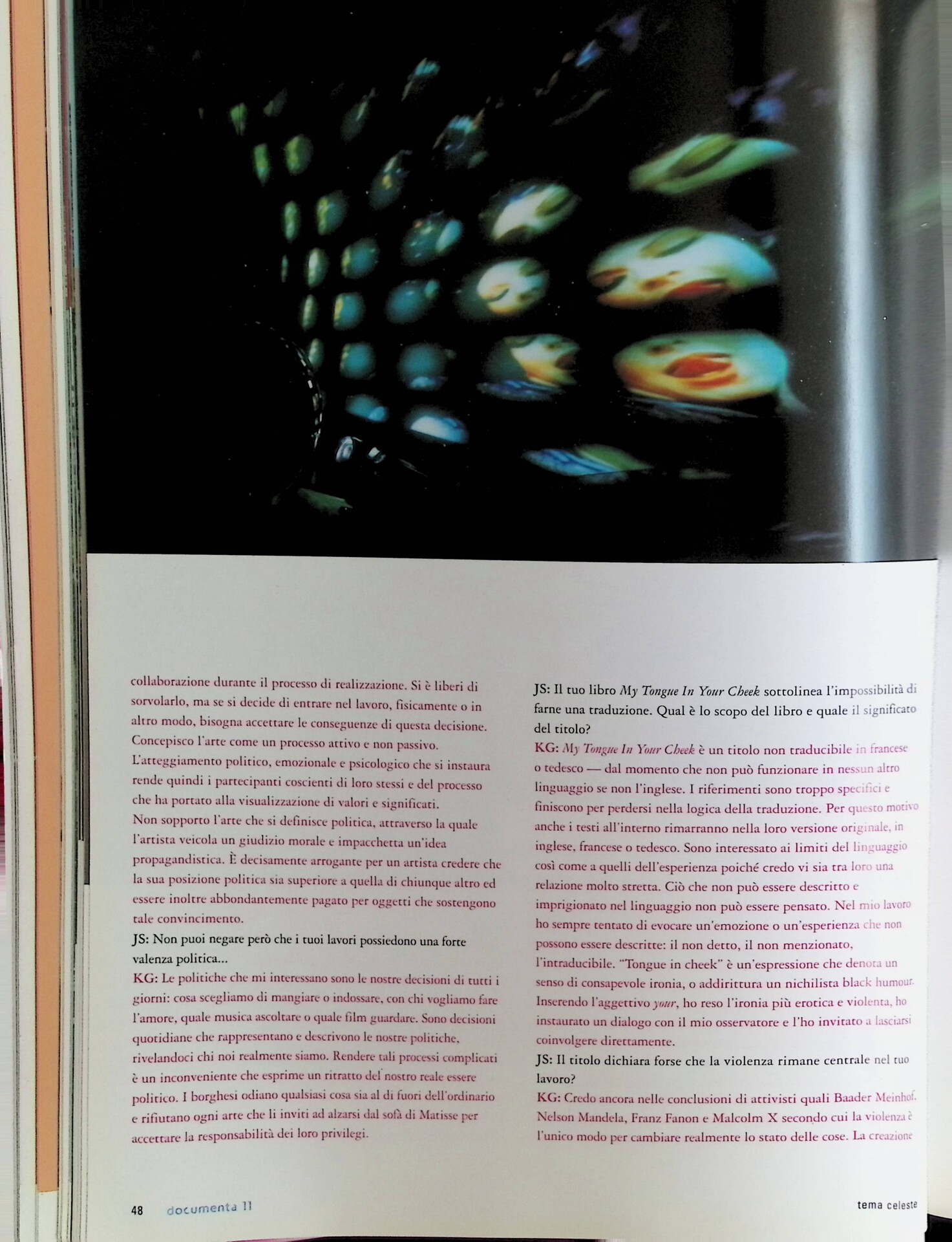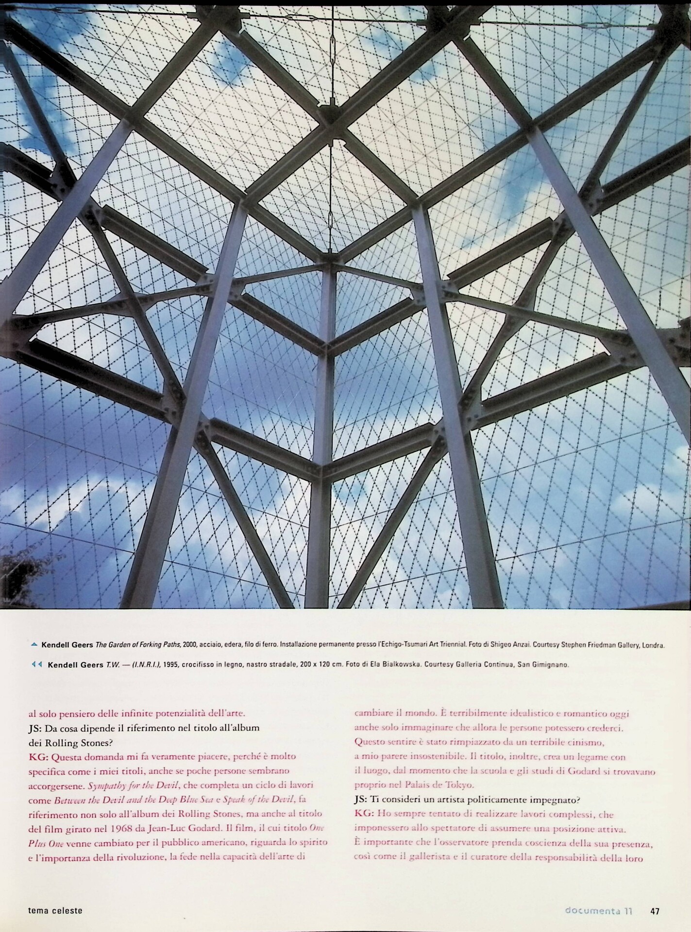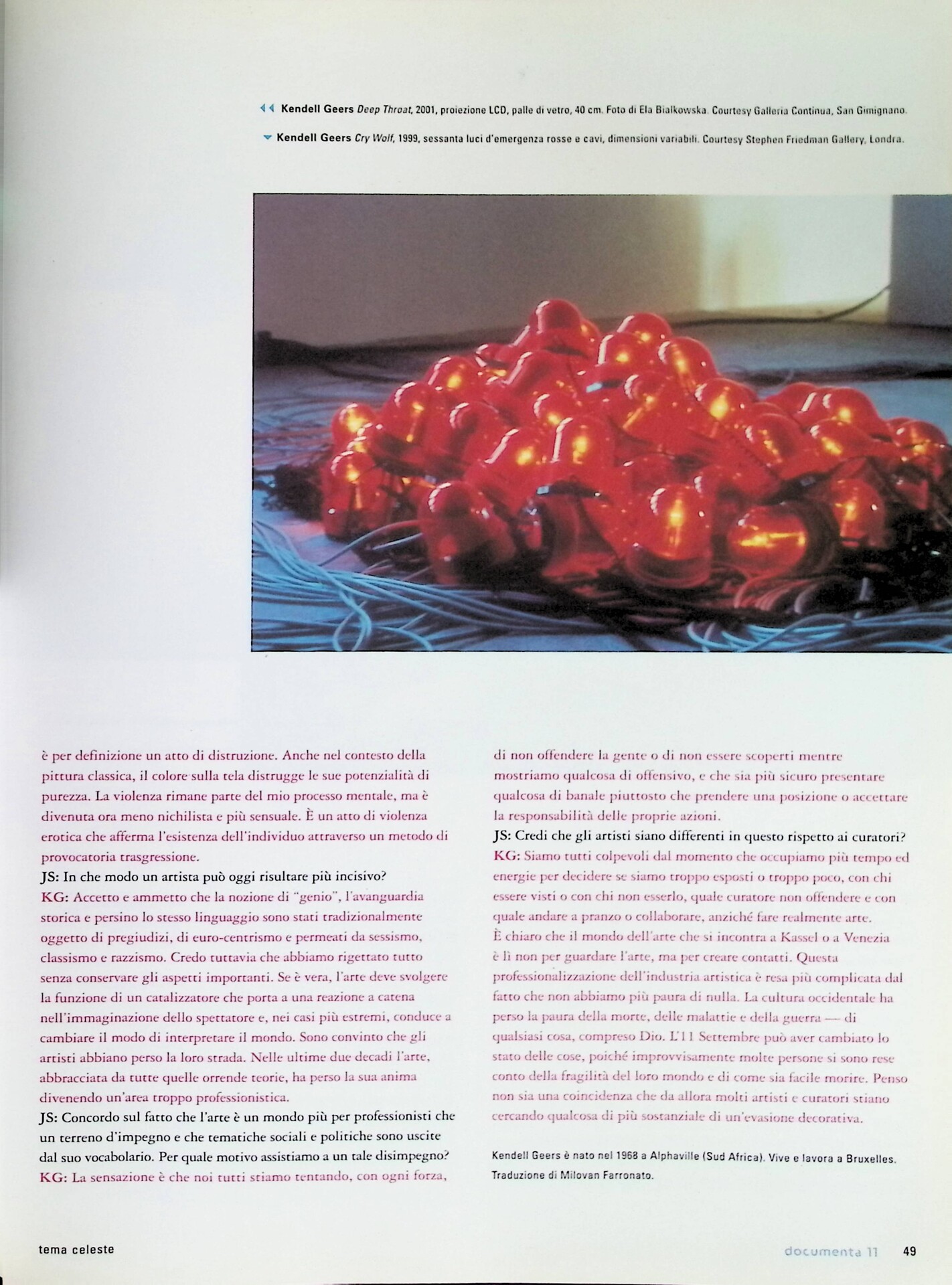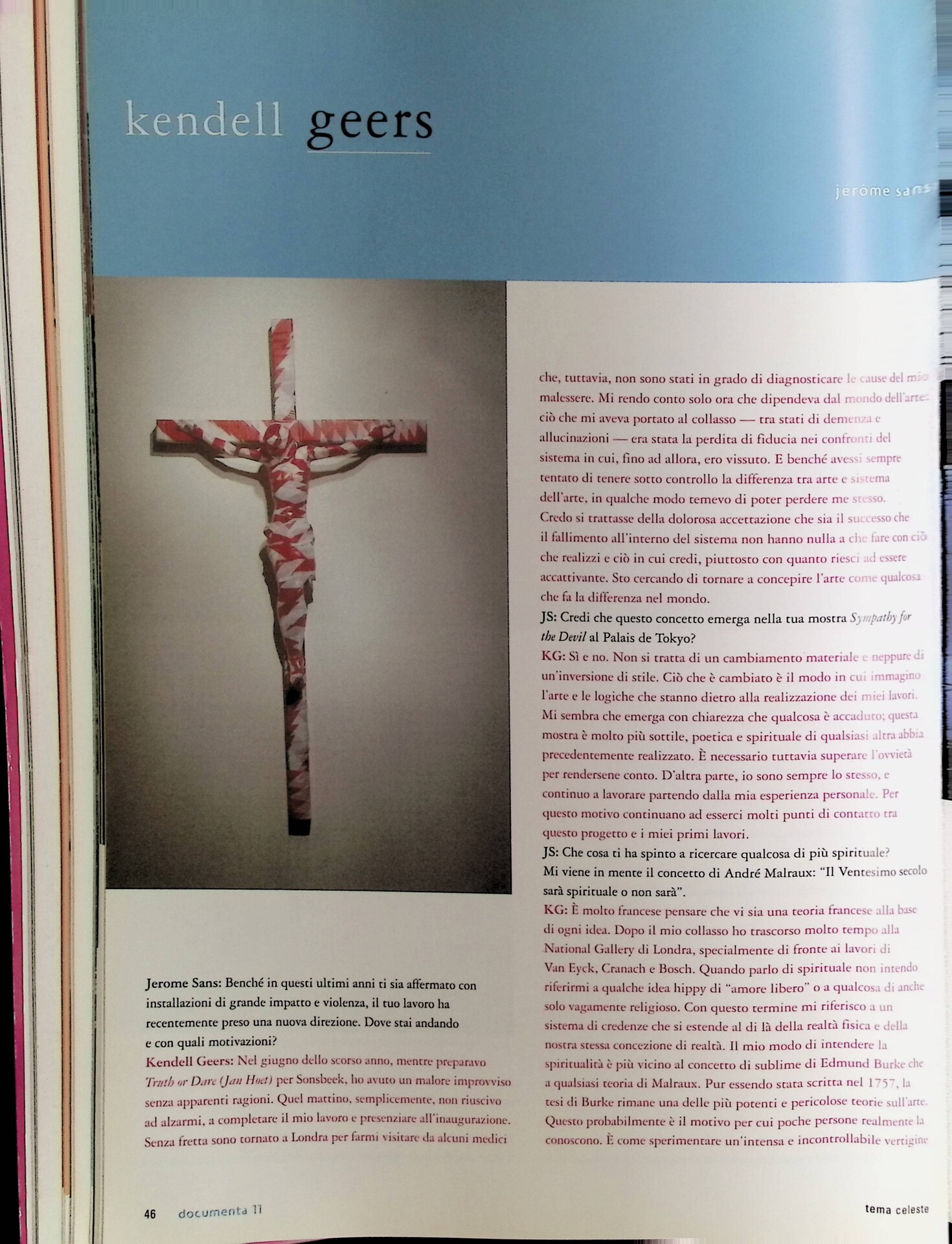 | Cit. bibliografica | Jerome Sans, Kendell Geers, «Tema Celeste», n. 92, luglio-agosto 2002, pp. 46-49 |