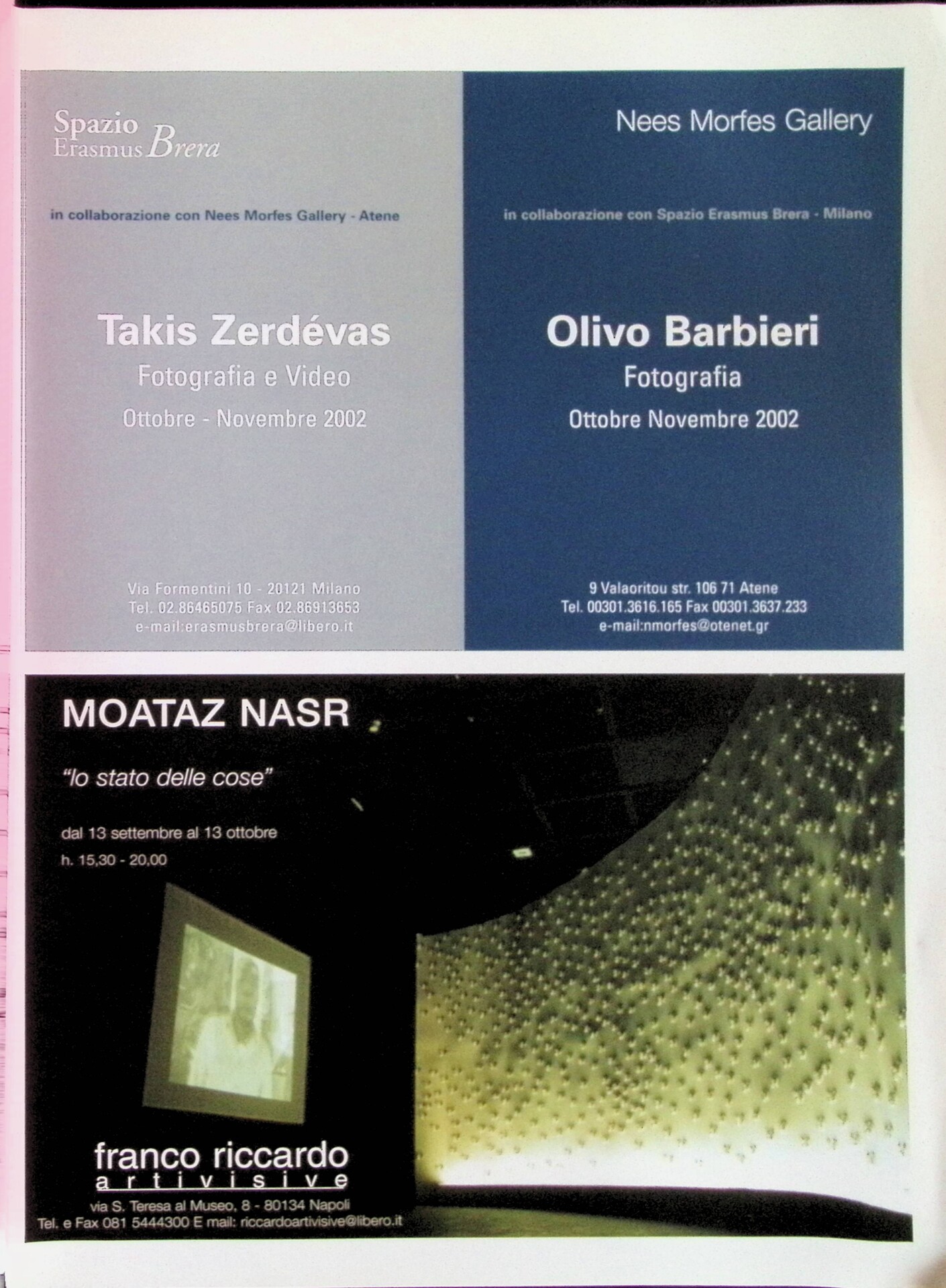 | Descrizione | Pubblicità della mostra Lo stato delle cose di Moataz Nasr [egiziano] alla Galleria Franco Riccardo Arti Visive di Napoli. |