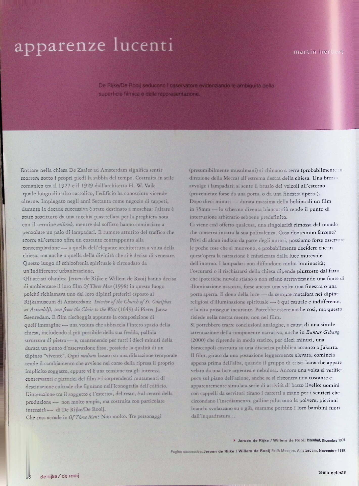 | Descrizione | Articolo su Jeroen de Rijke e Willem de Rooij, autori dei film Of Three Man, che presenta tre personaggi musulmani, e Bantar Jebang, incentrato su una baraccopoli di Jakarta. |