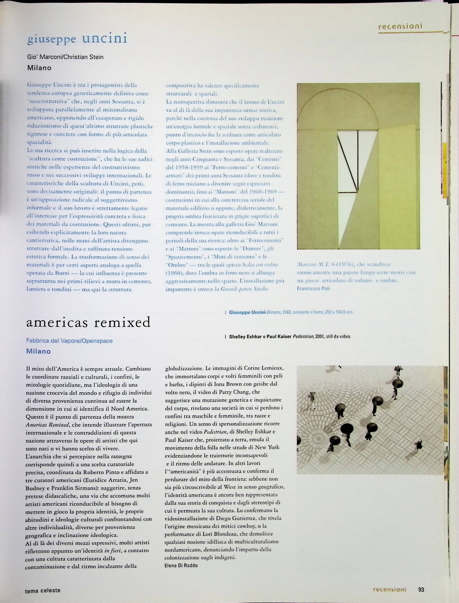 Elena Di Raddo, Americas Remixed, «Tema Celeste», n. 94, novembre-dicembre 2002, p. 93