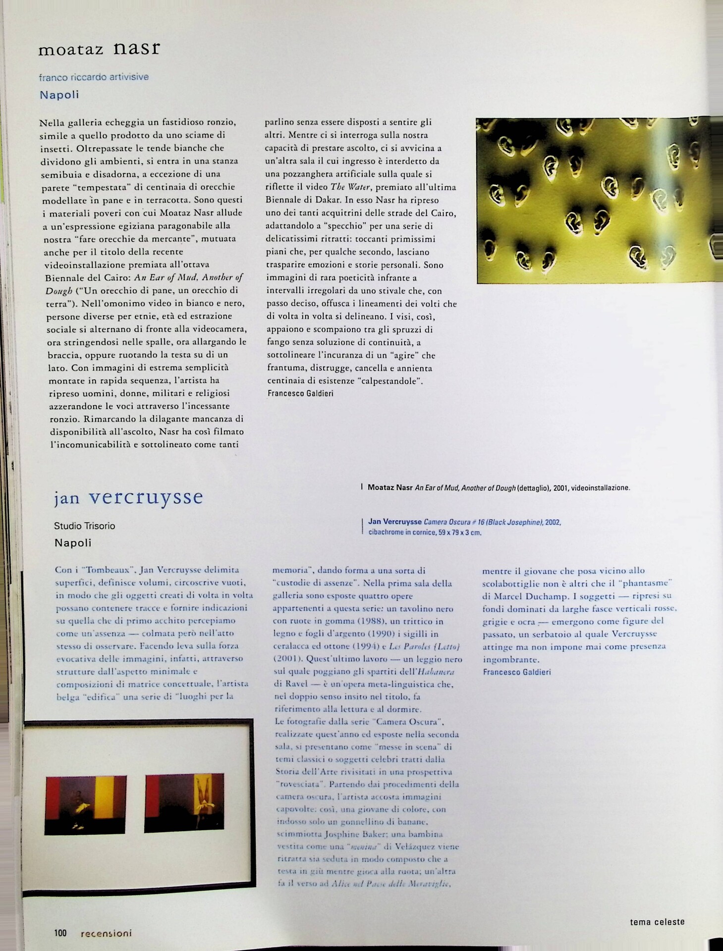 Francesco Galdieri, Moataz Nasr, «Tema Celeste», n. 94, novembre-dicembre 2002, p. 100
