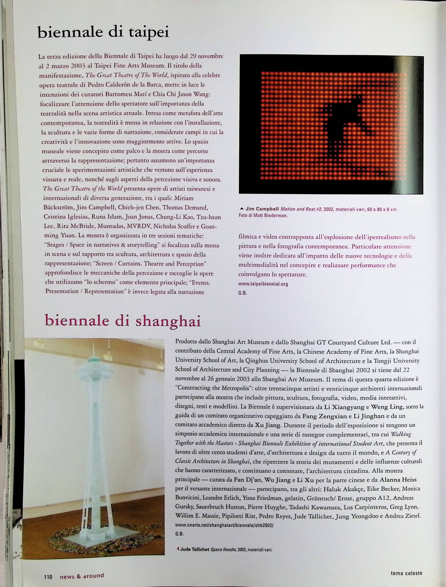 G.B., Biennale di Shanghai, «Tema Celeste», n. 94, novembre-dicembre 2002, p. 110